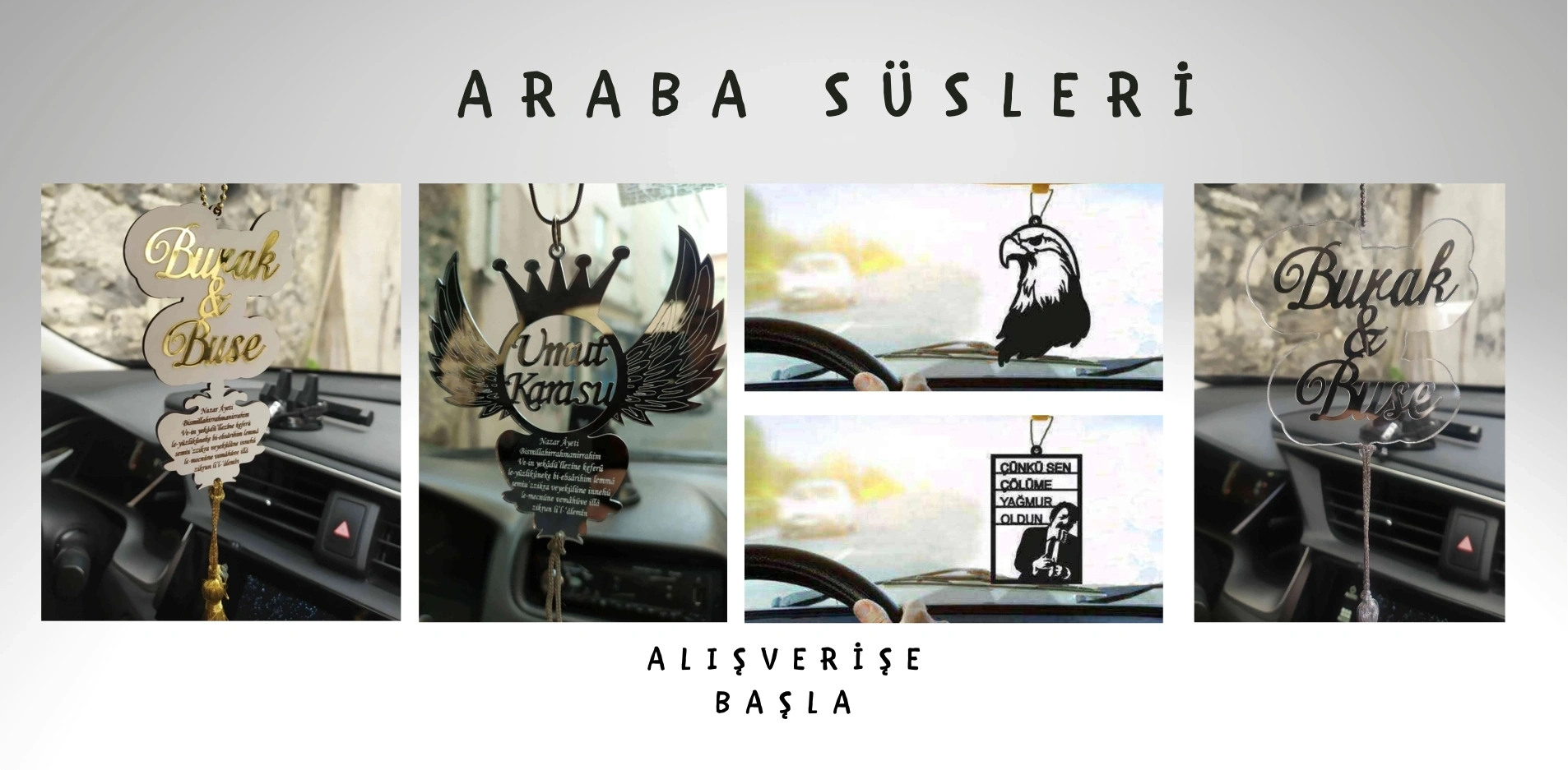 Pleksi Araba Dikiz Aynası Süsü Ayetli A7 Gümüş