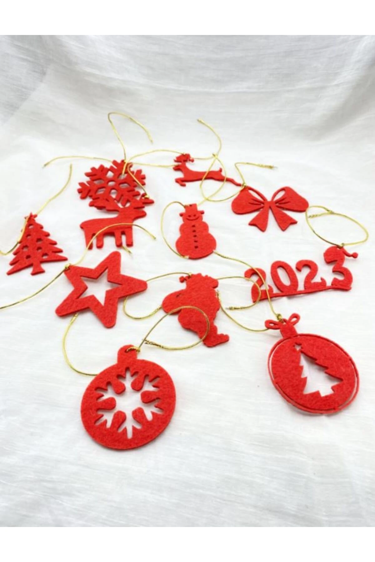 2024 Yılbaşı Ağaç Süsü Hediyelik Keçe 12 Parça Set