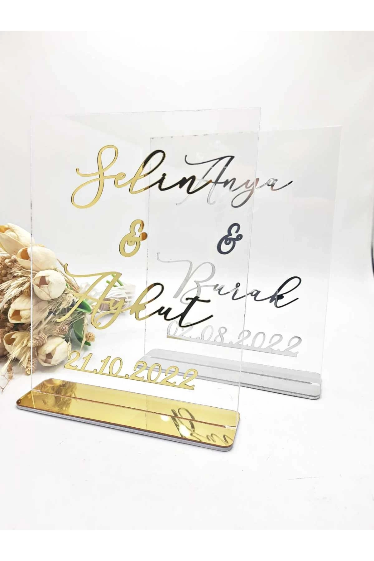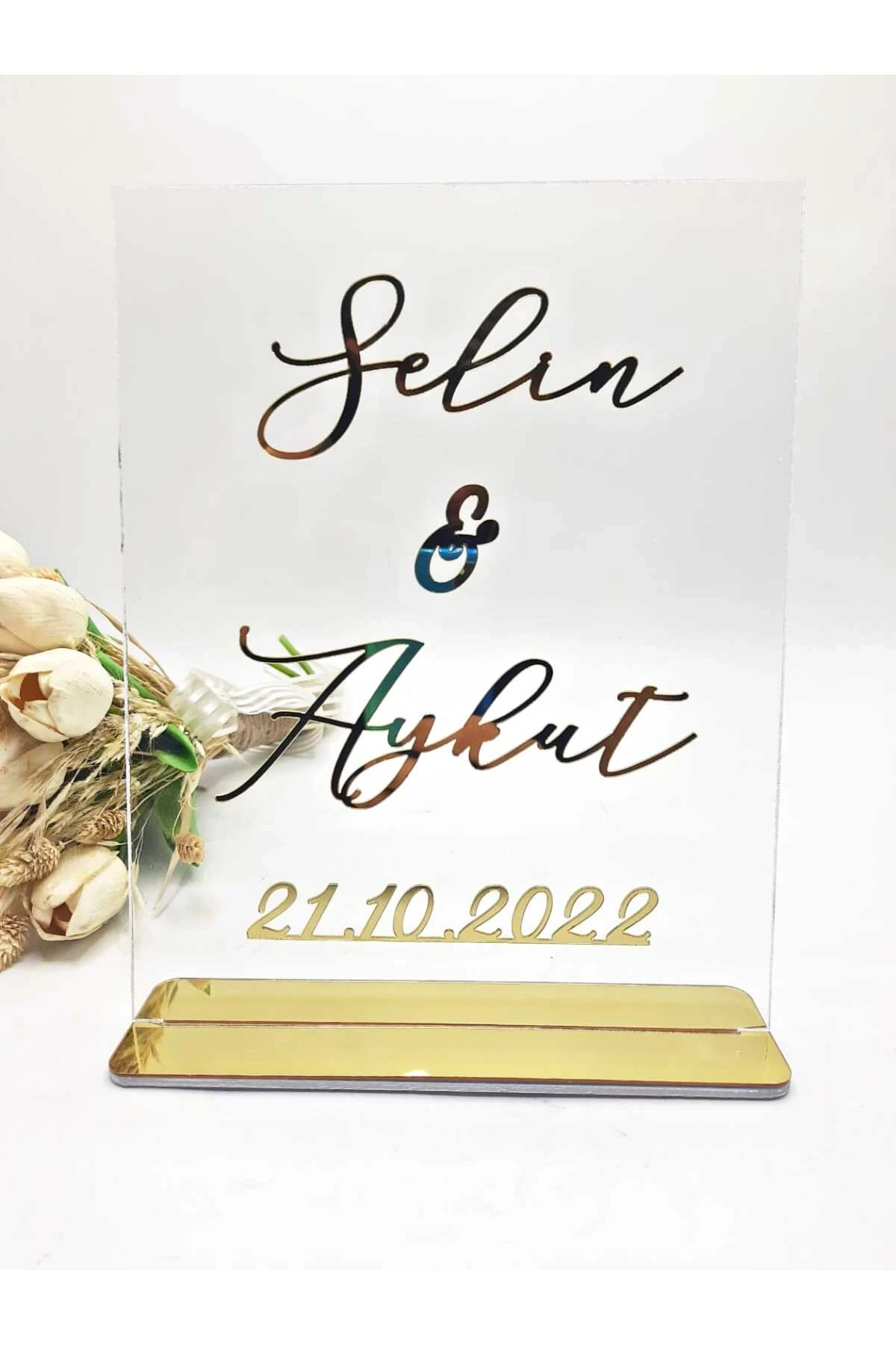 25x25 Cm Figürlü Pleksi Isimlik Masa Üstü Isim Ayna Isimlik Söz Nişan