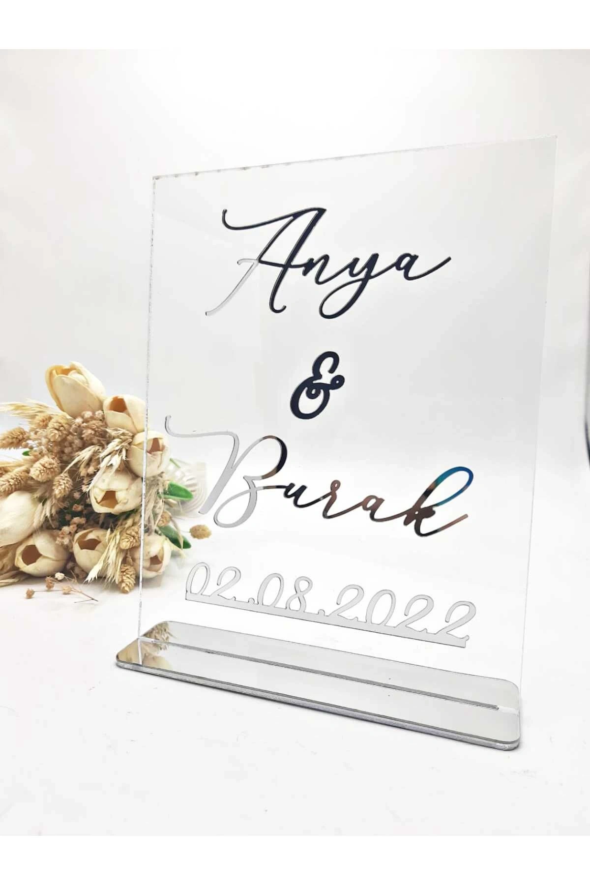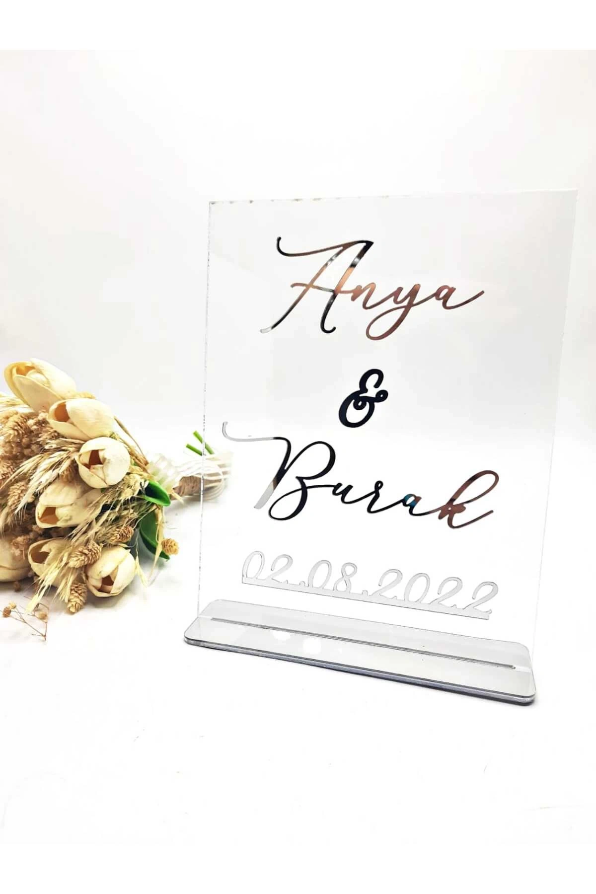 25x25 Cm Figürlü Pleksi Isimlik Masa Üstü Isim Ayna Isimlik Söz Nişan