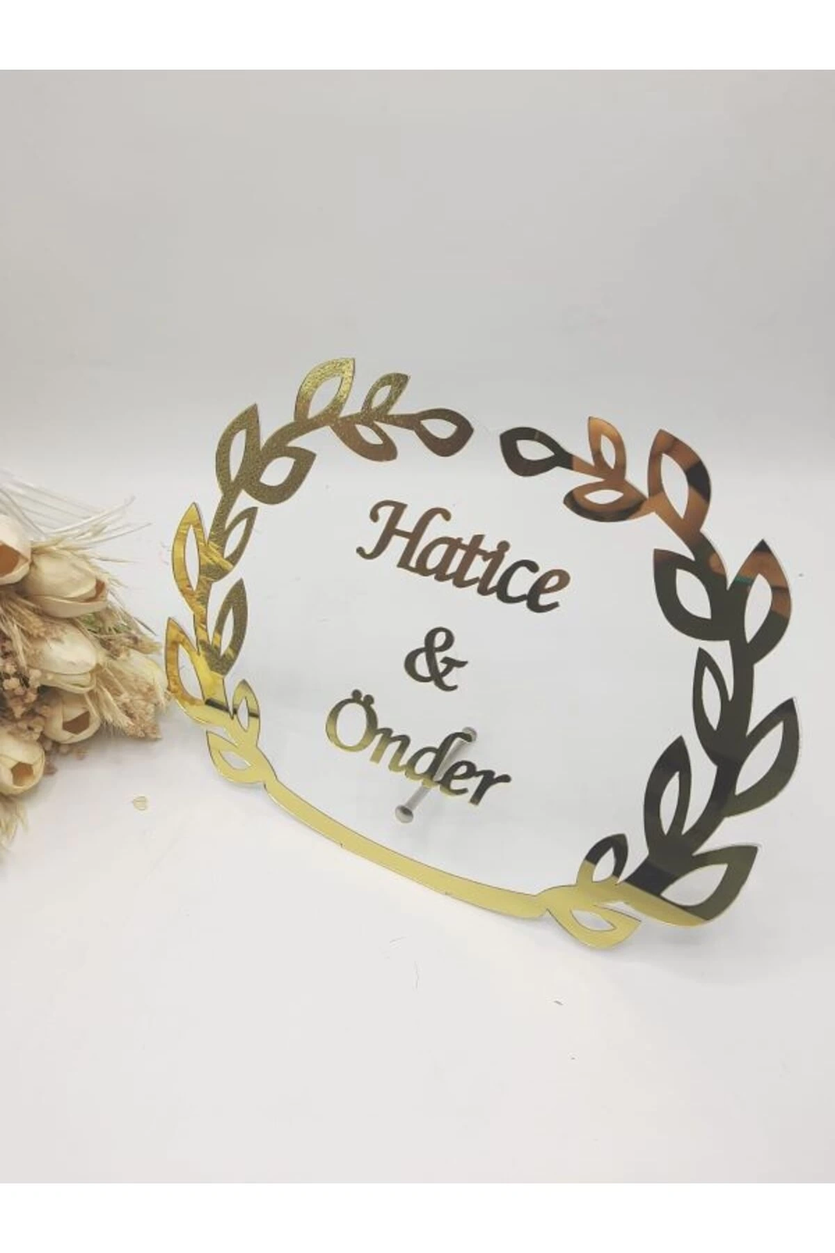 28x25 Cm Sarmaşık Masaüstü Pleksi Isimlik Söz Nişan Kına Gold