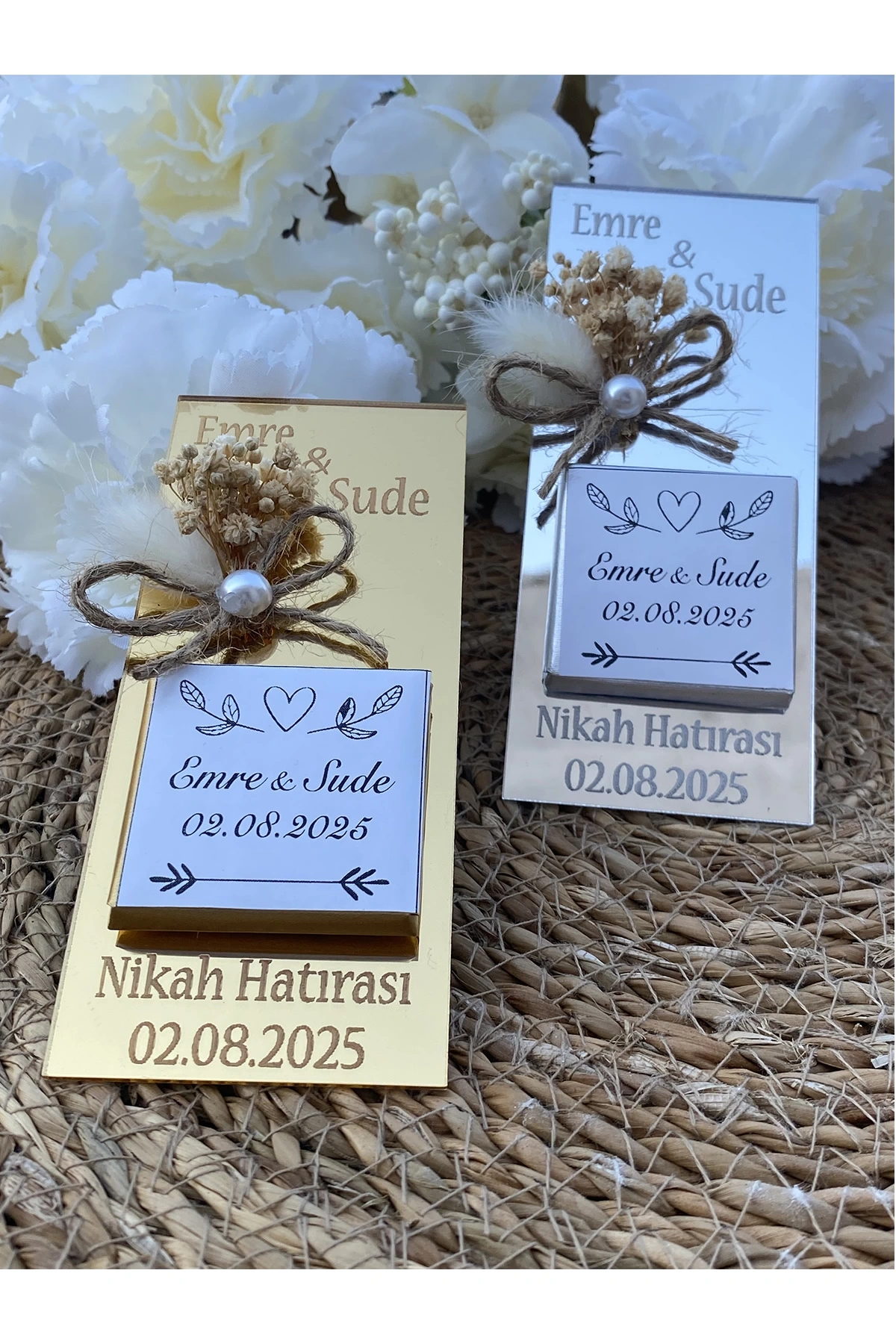 - Gold veya Gümüş sargılı lüks çikolata - Ürün arkasında mıknatıs mevcuttur.; - Ürün ölçüsü 12x5 cm'dir.; - Fotoğraftaki gibi süslenerek gönderilmektedir.; - Magnetler tek tek poşetlenmiş olarak gönderilecektir.; - ÜRÜN ÜZERİNE YAZILMASINI İSTEDİĞİNİZ İSİM/TARİH/ YAZIYI VE RENGİ ÜRÜNÜ SATIN ALDIKTAN SONRA SİPARİŞ NUMARANIZ İLE BİRLİKTE SATICIYA SOR BÖLÜMÜNDEN İLETİNİZ.
