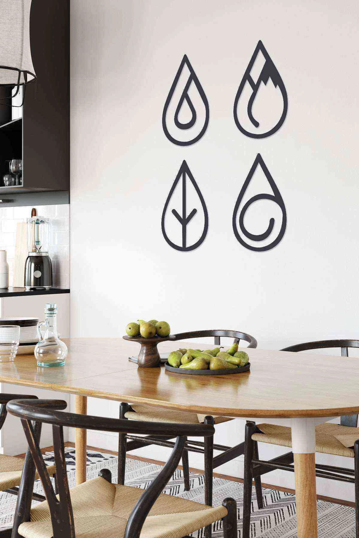 4 Element Duvar Dekoru Tablosu Siyah Ahşap Lazer Mdf