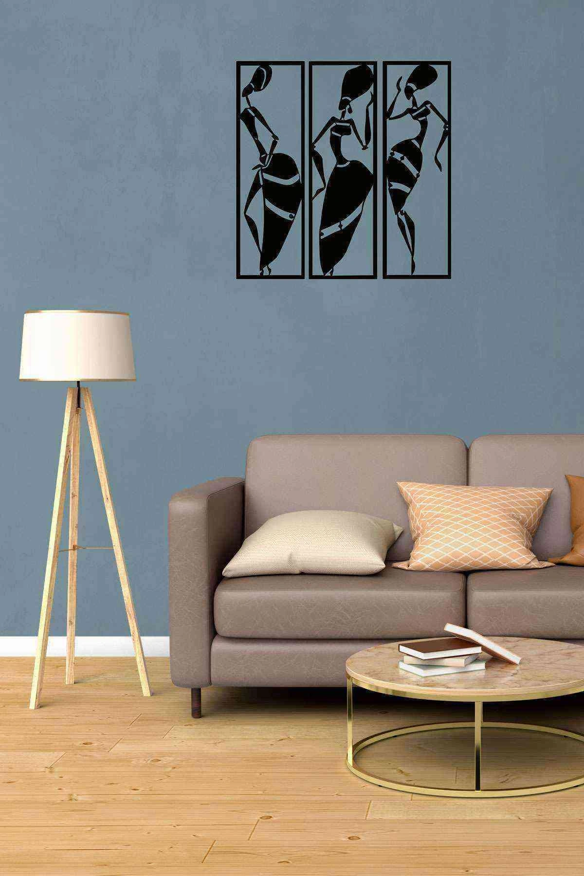 Afrikalı Kızlar Duvar Dekoru Tablosu Siyah Ahşap Lazer Mdf