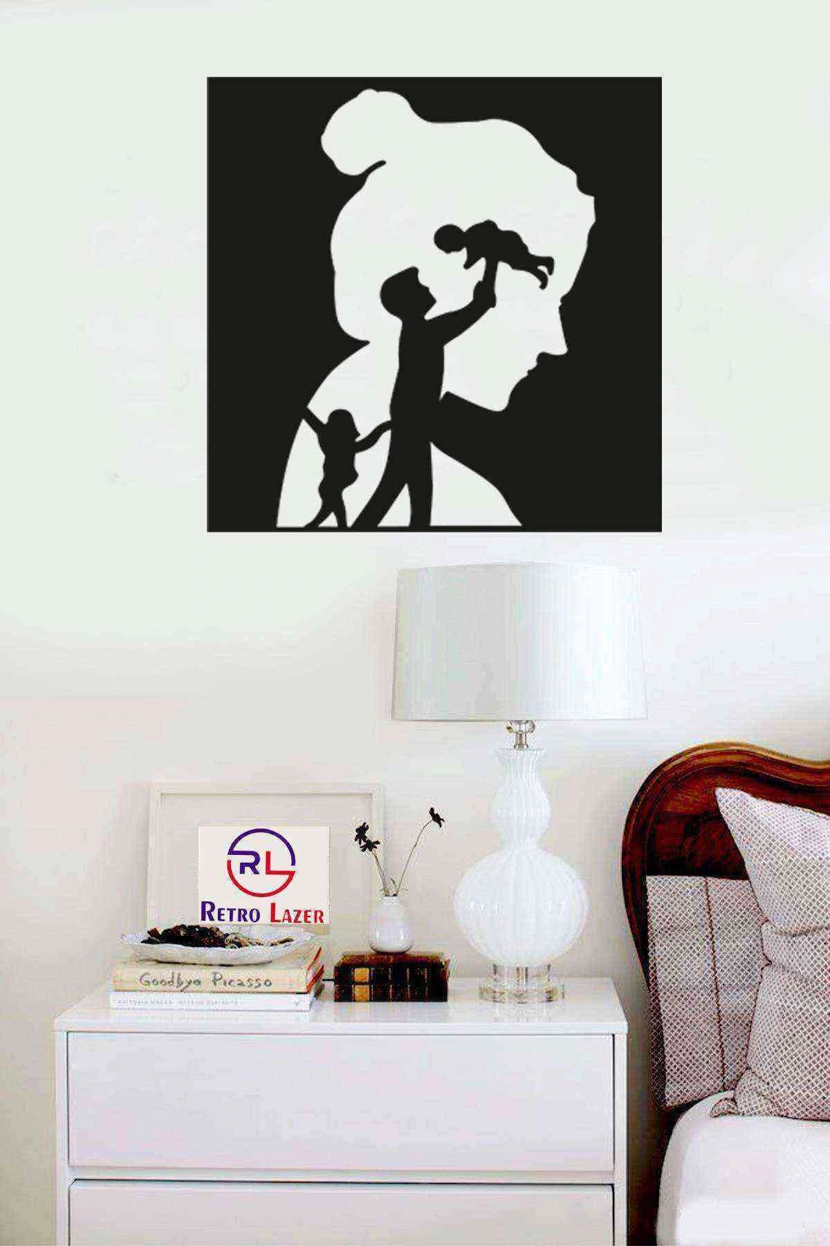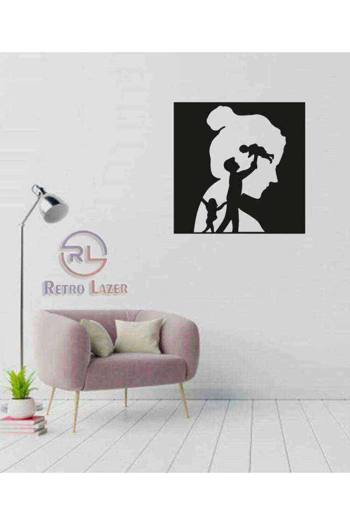Aile Tablosu Duvar Dekoru Siyah Ahşap Lazer Mdf