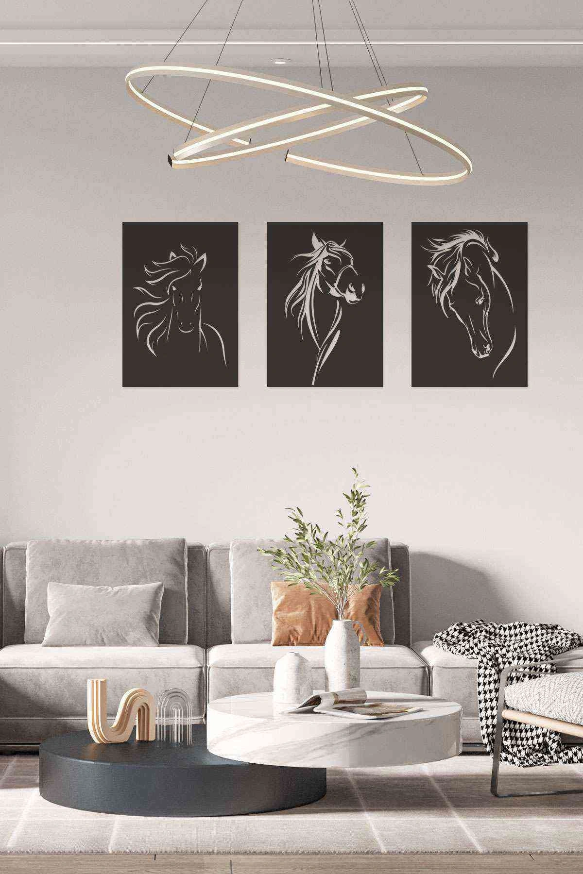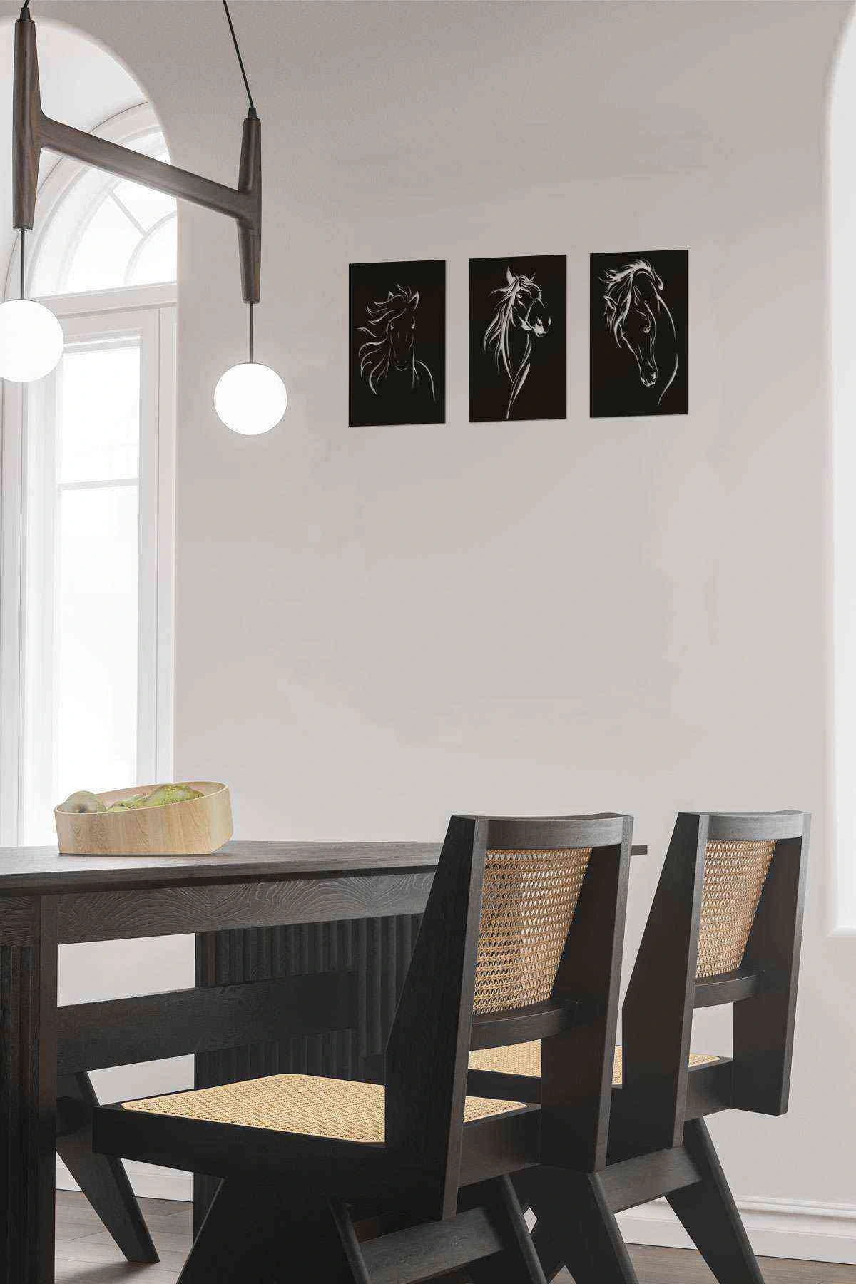 - Ahşap malzeme kullanımı, duvar dekorasyonunuza doğal ve sıcak bir dokunuş katar; - Lazer kesim teknolojisi ile üretilen detaylar, tablonun estetik görünümünü artırır; - Siyah renk seçeneği, modern ve şık bir atmosfer yaratırken her türlü dekorasyon stiline uyum sağlar; - Üçlü tasarım, duvarınızda dengeli ve uyumlu bir kompozisyon oluşturur;