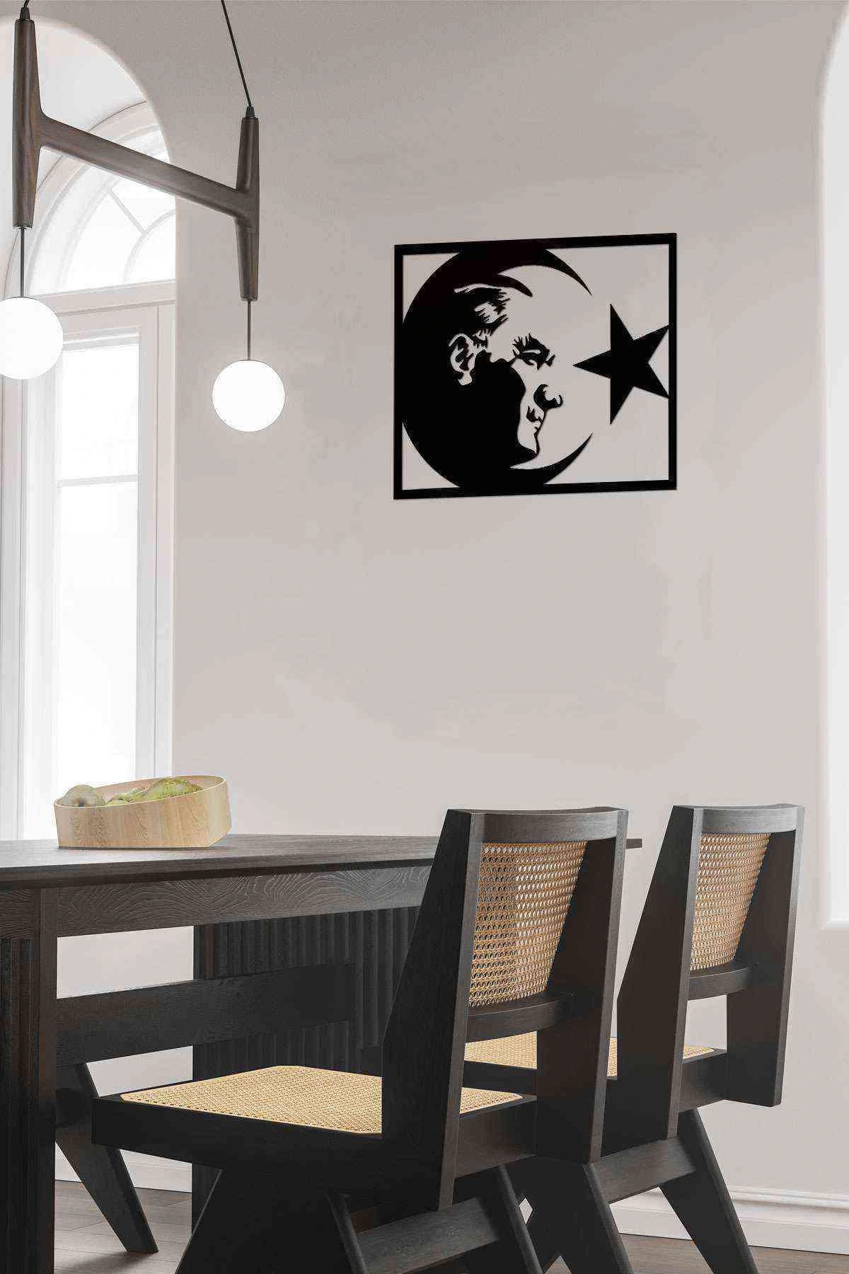 Atatürk Duvar Dekoru Tablosu Siyah Ahşap Lazer Mdf