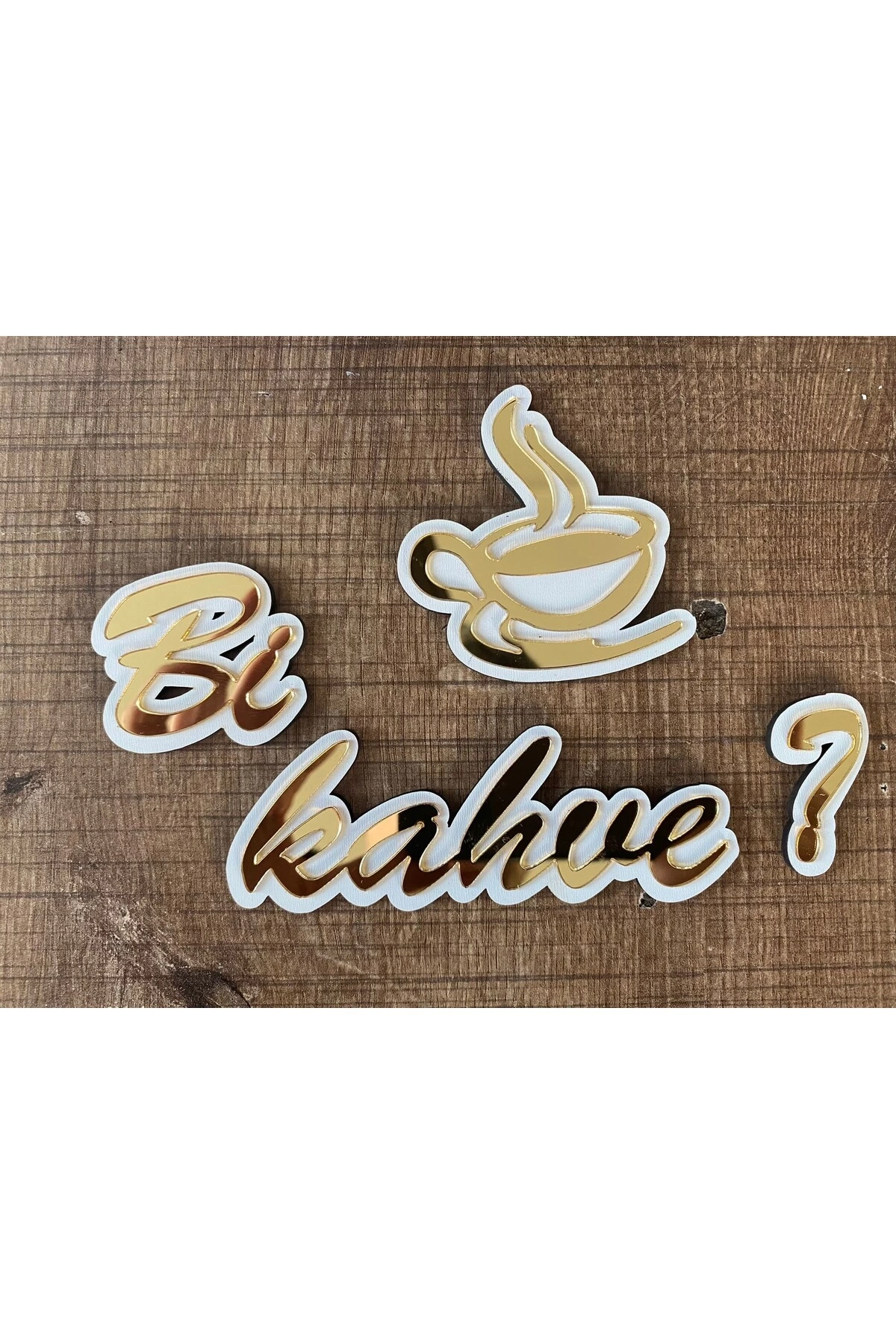 Bi Kahve Siyah Beyaz Zemin Üzeri Gold Pleksi Duvar Yazısı Mutfak Duvar Dekoru
