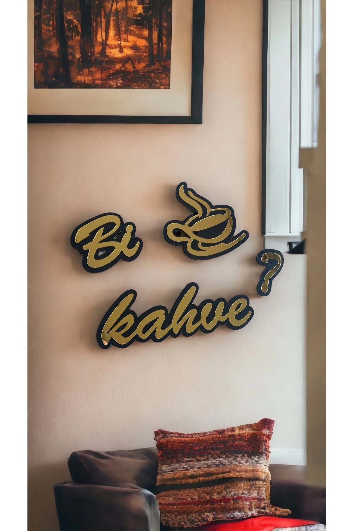 Bi kahve Siyah Beyaz Zemin Üzeri Gold Pleksi Duvar Yazısı Mutfak Duvar Dekoru 2