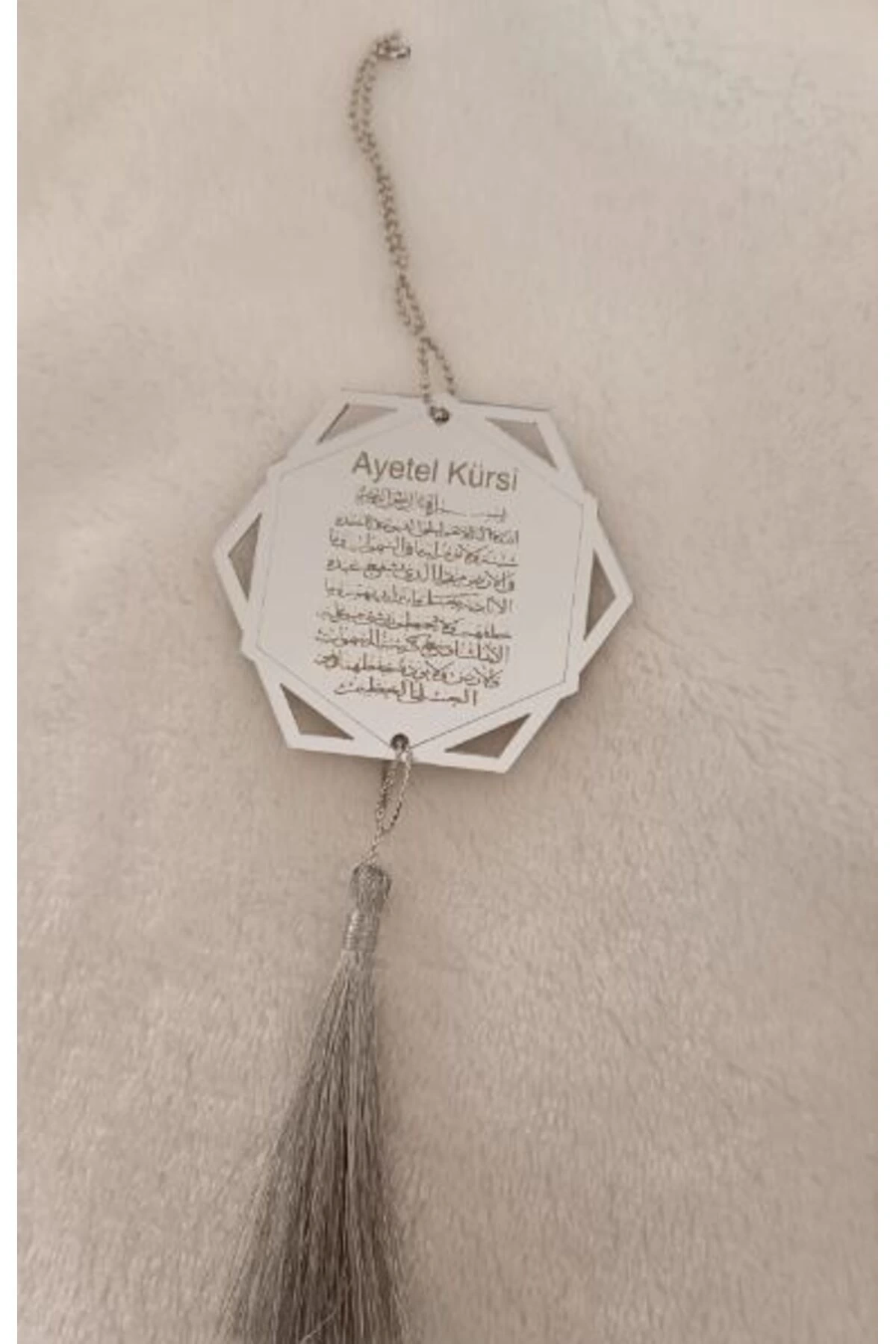 Gümüş Çift Taraflı Ayetel Kürsi Pleksi Araba Dikiz Aynası Süsü