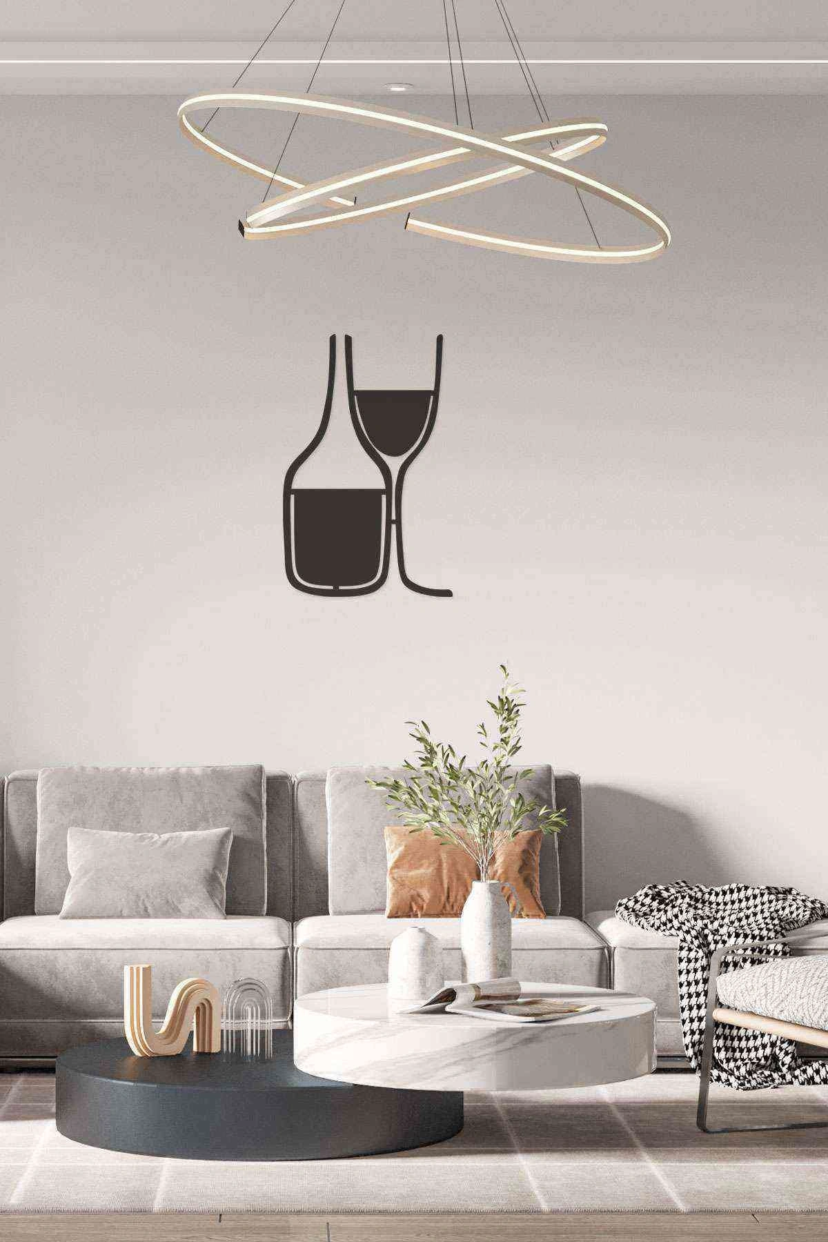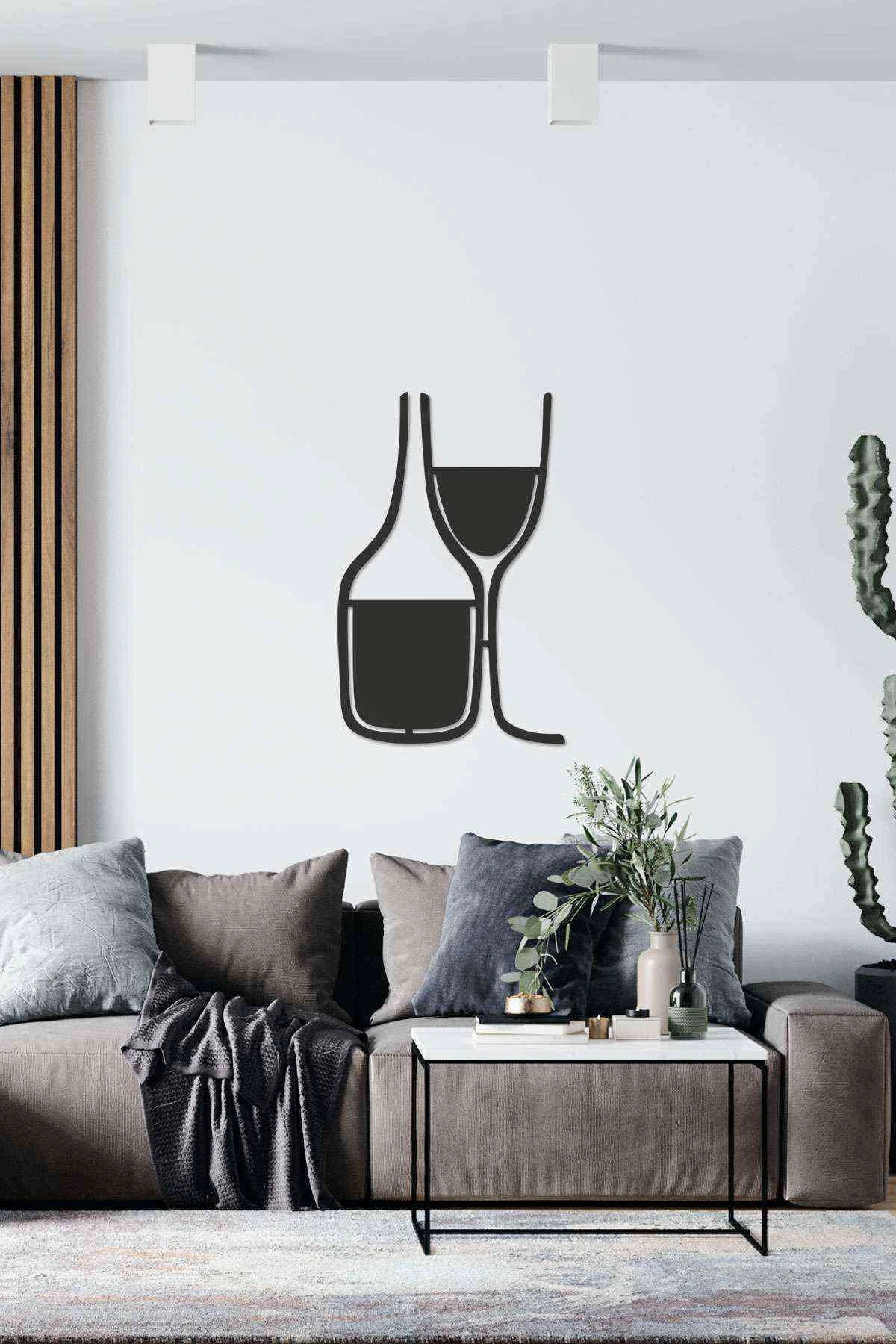 ÇiftBardak Şarap Figürlü 3D Mdf Tablo Evinize Ofisinize Yeni Tarz