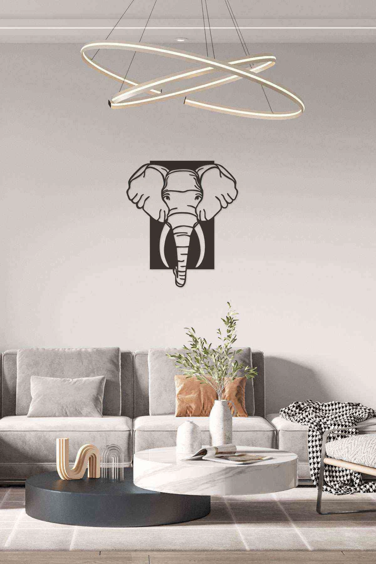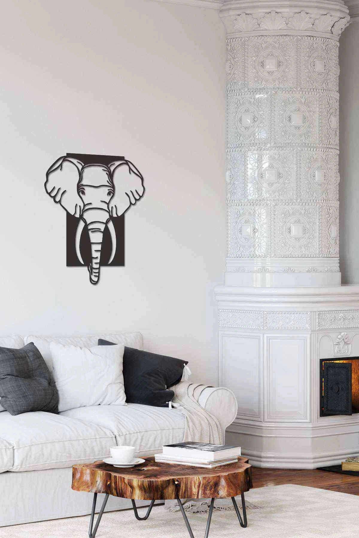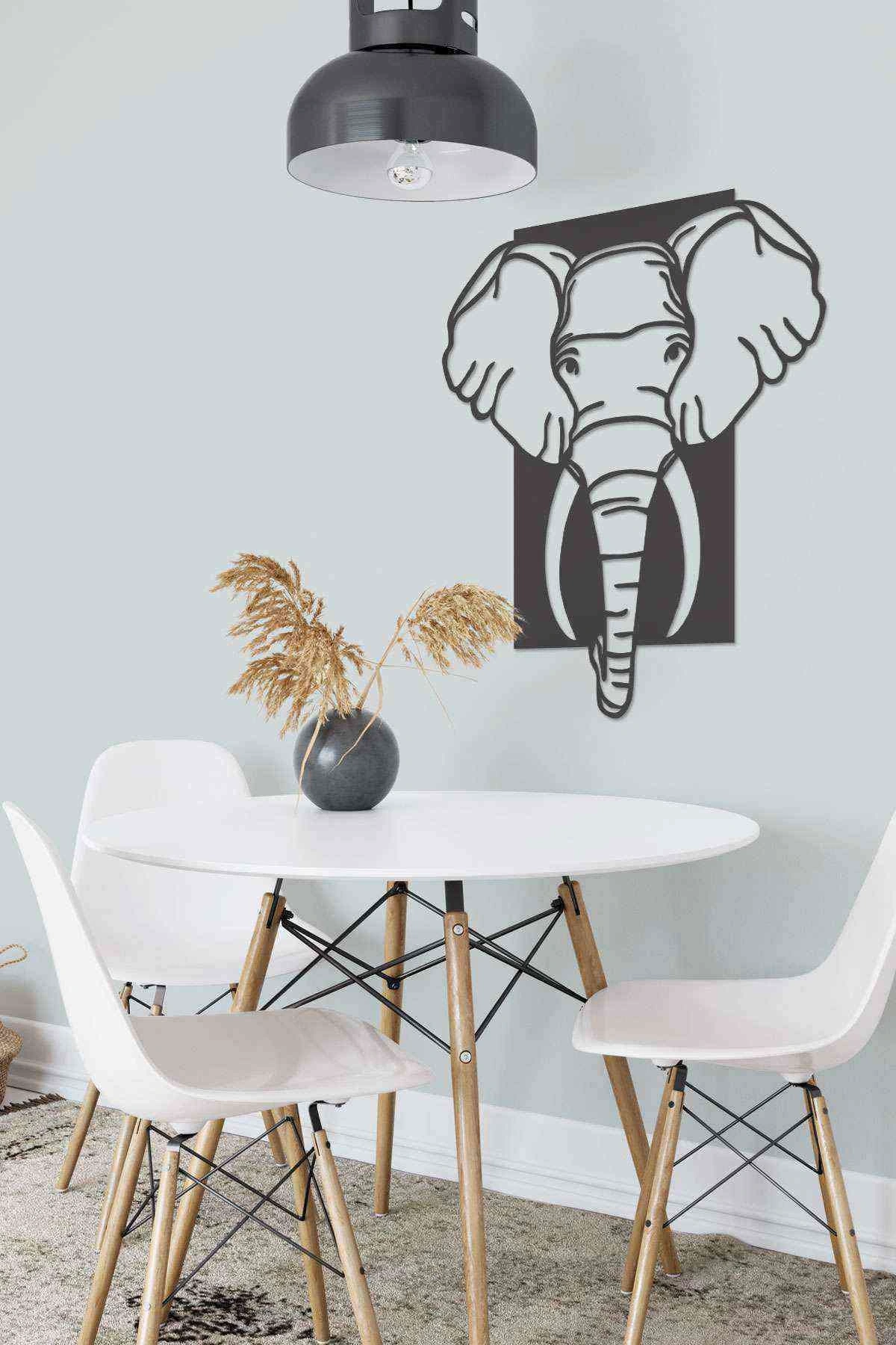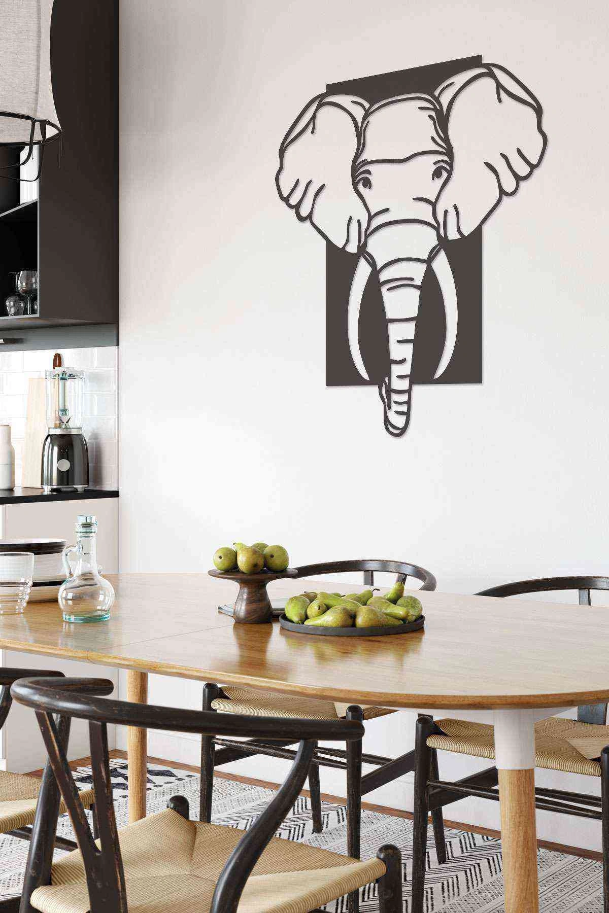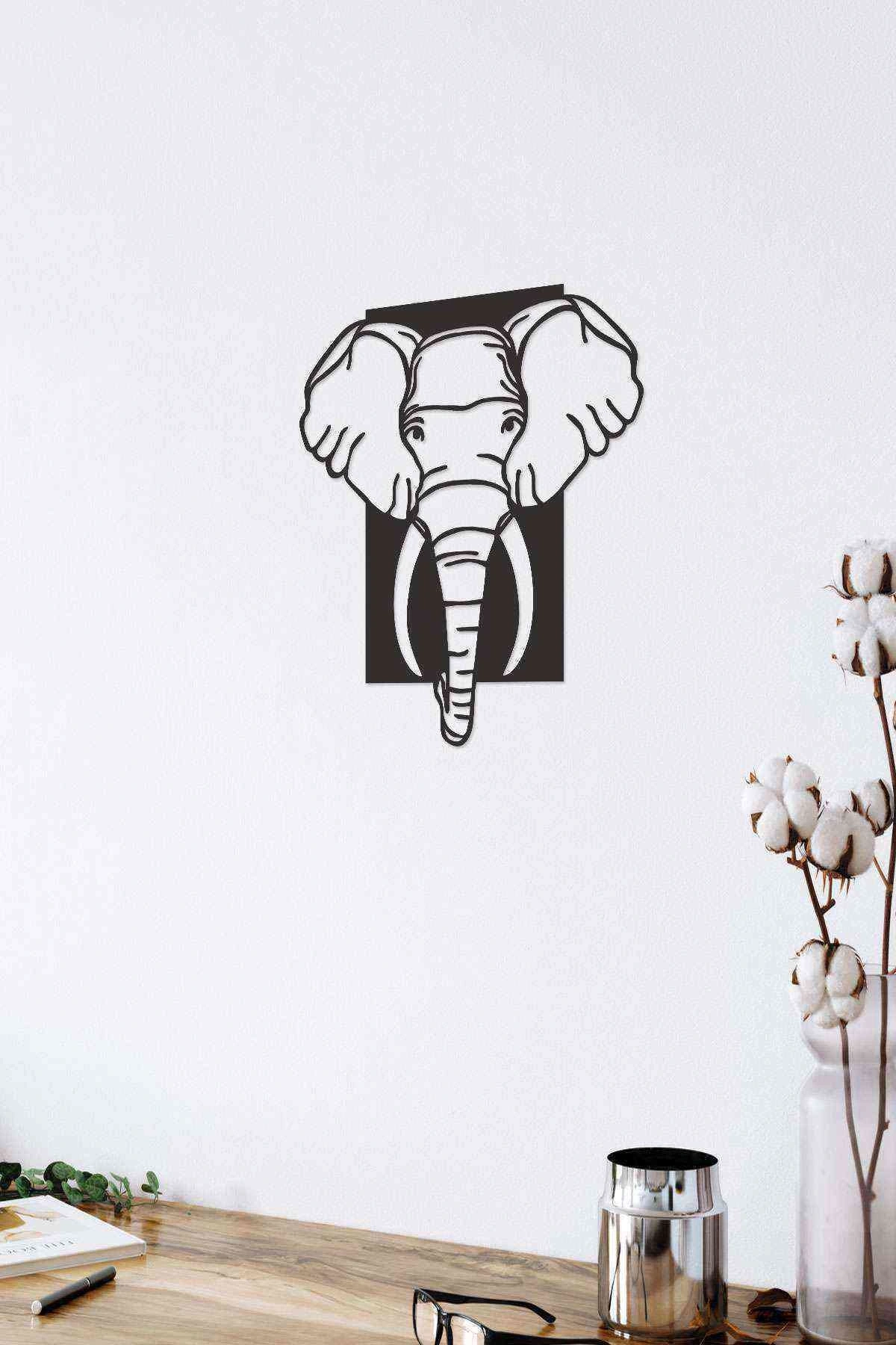 Fil Figürlü Siyah Ahşap Lazer Duvar Dekoru Tablo Mdf