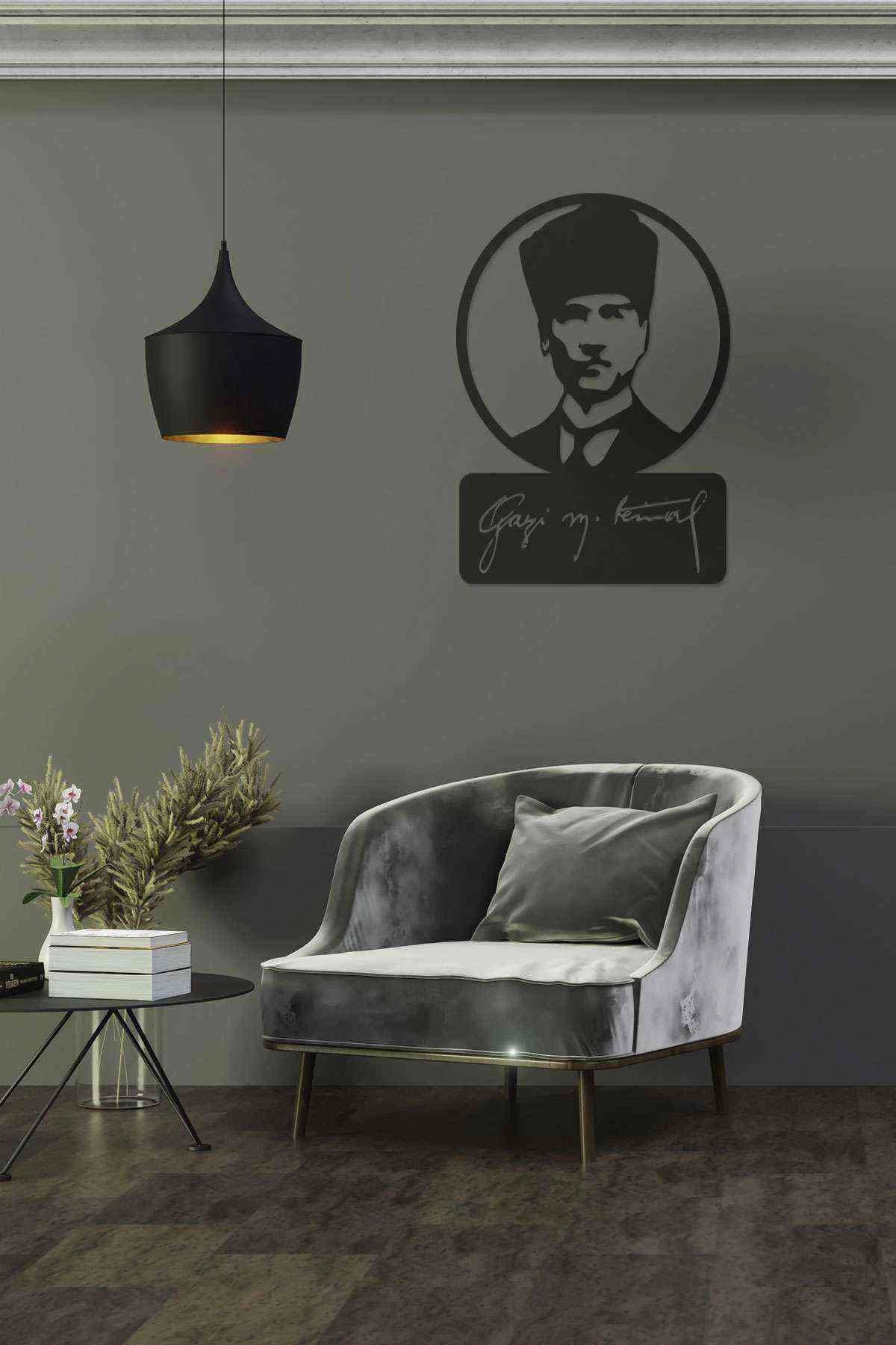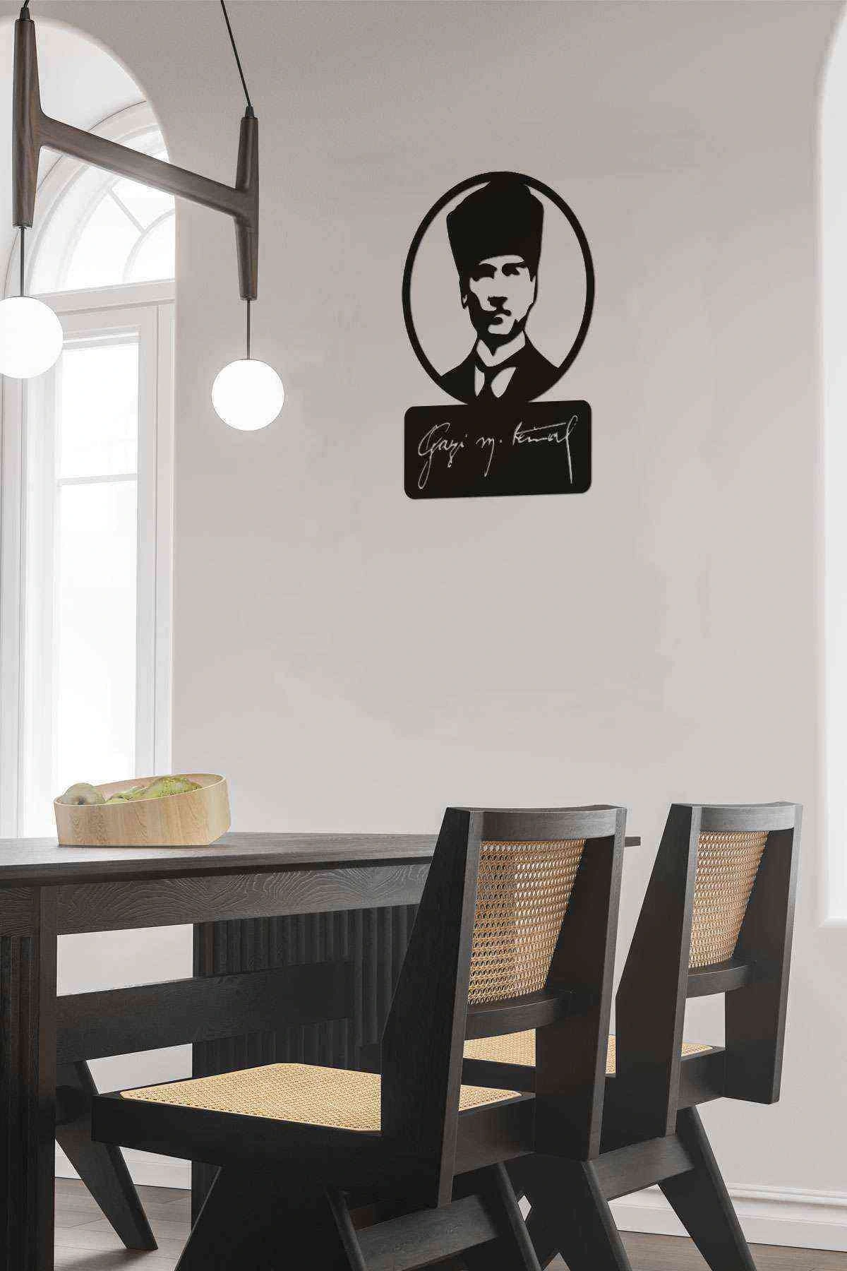 - Gazi Mustafa Kemal Atatürk'ün ikonik figürünü taşıyan bu duvar dekoru, evinizin veya ofisinizin duvarlarınıza tarihi bir dokunuş katıyor; - Dayanıklı ahşap malzemesiyle uzun ömürlü kullanım sunar ve zamanla bile formunu korur; - Lazer kesim teknolojisi ile üretilen bu tablo, detaylı ve net çizgileriyle dikkat çeker; - Siyah renk seçeneğiyle modern ve şık bir görünüm sağlar, her türlü dekorasyon stiline kolayca uyum sağlar;