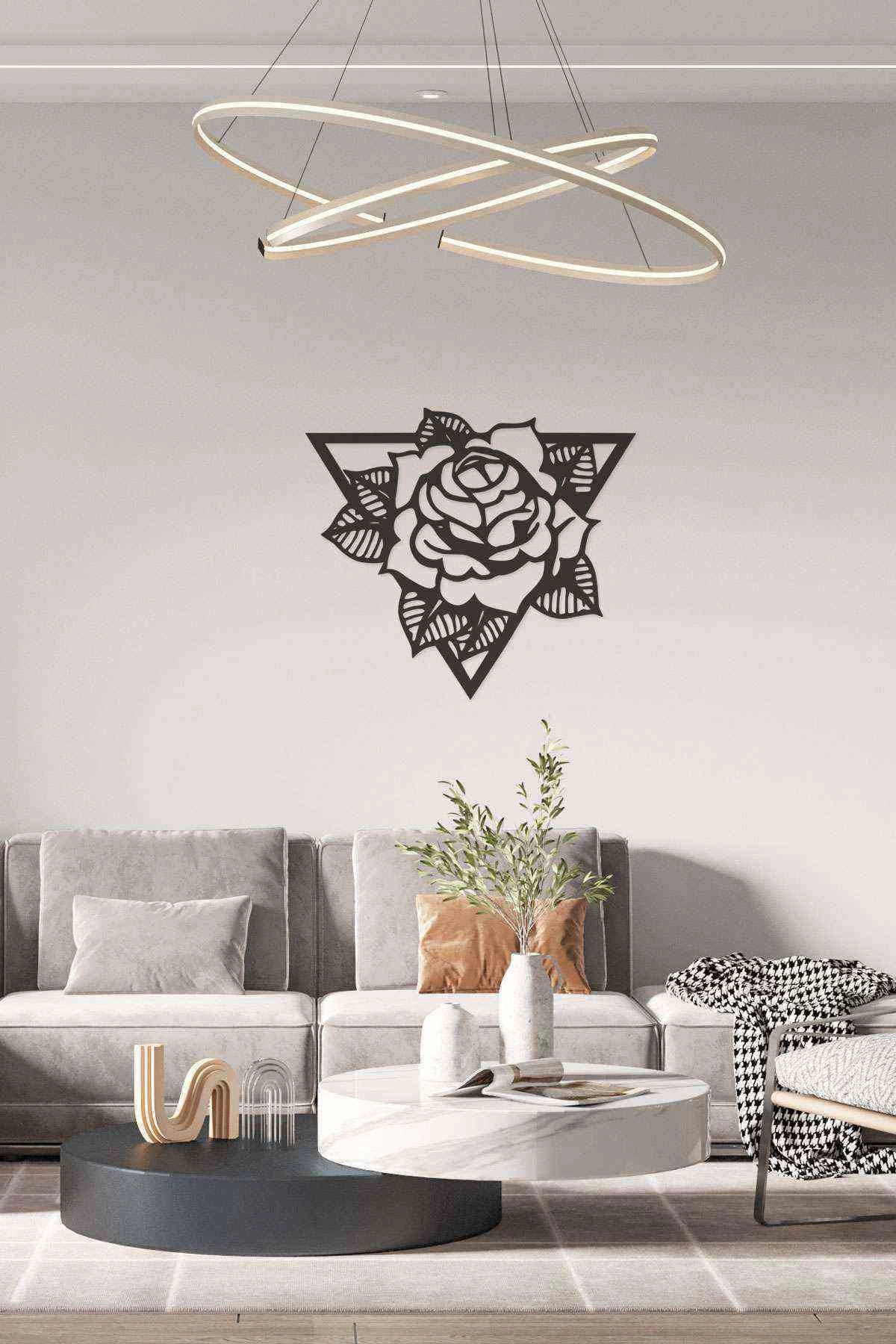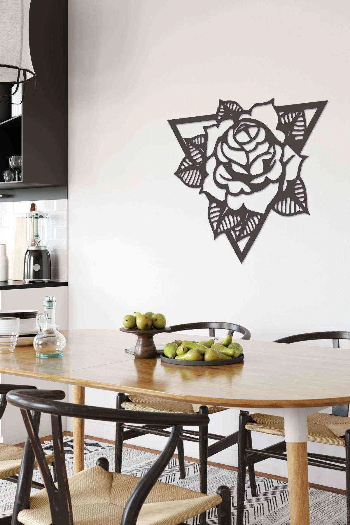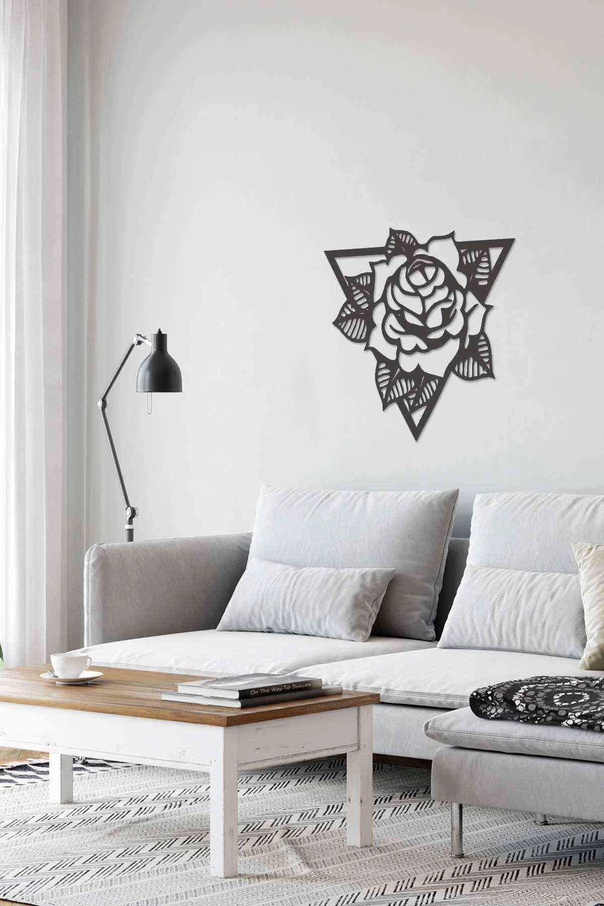 Gül Prizma Siyah Ahşap Lazer Duvar Dekoru Tablo Mdf