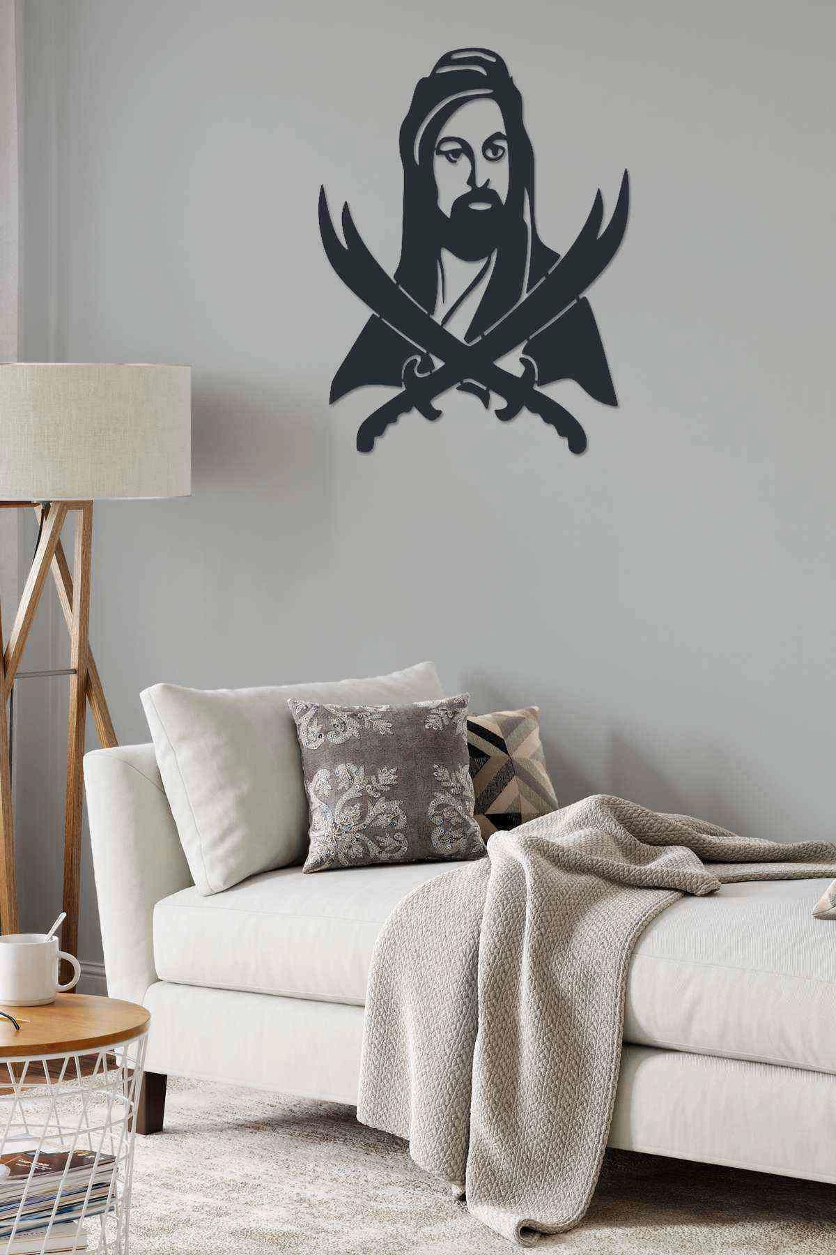 Hz Ali iki kılıç Duvar Dekoru Tablo Siyah Ahşap Mdf