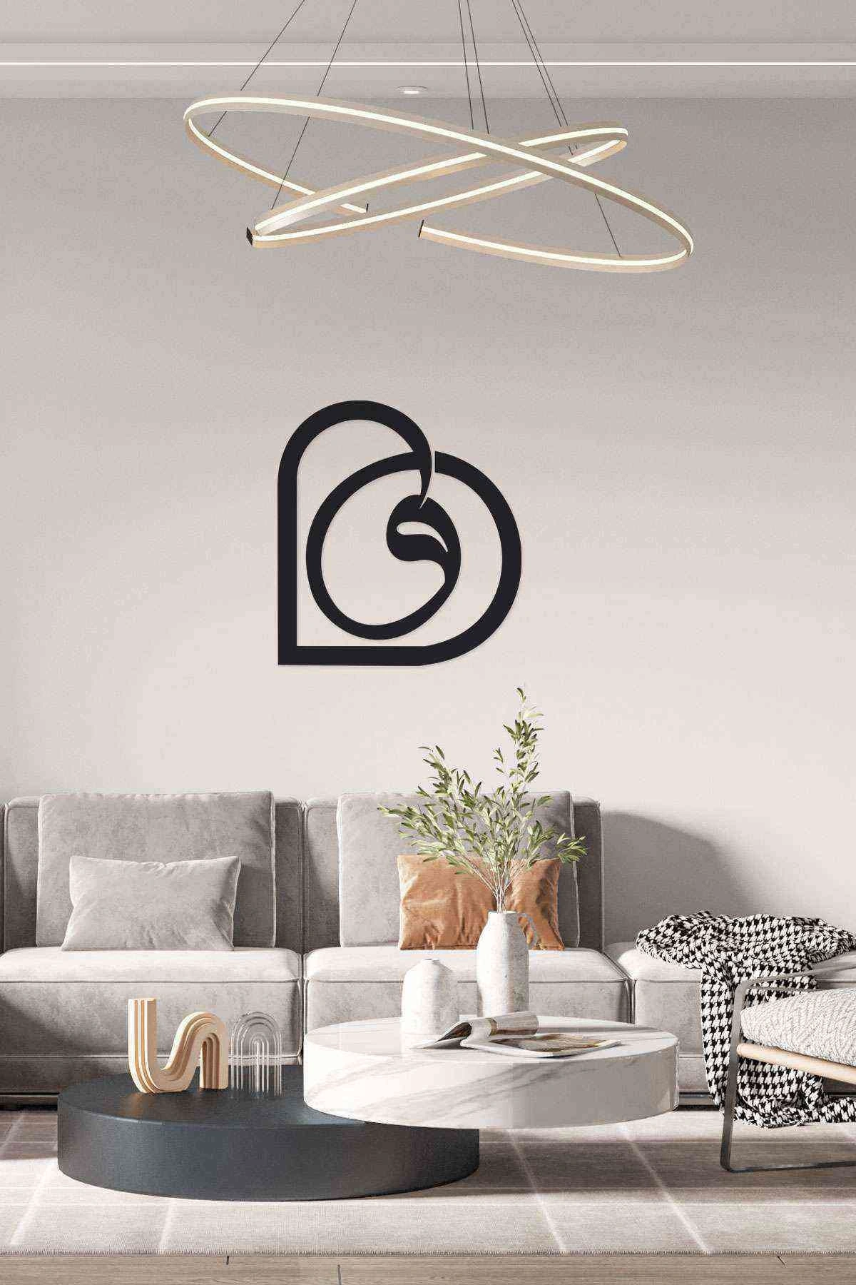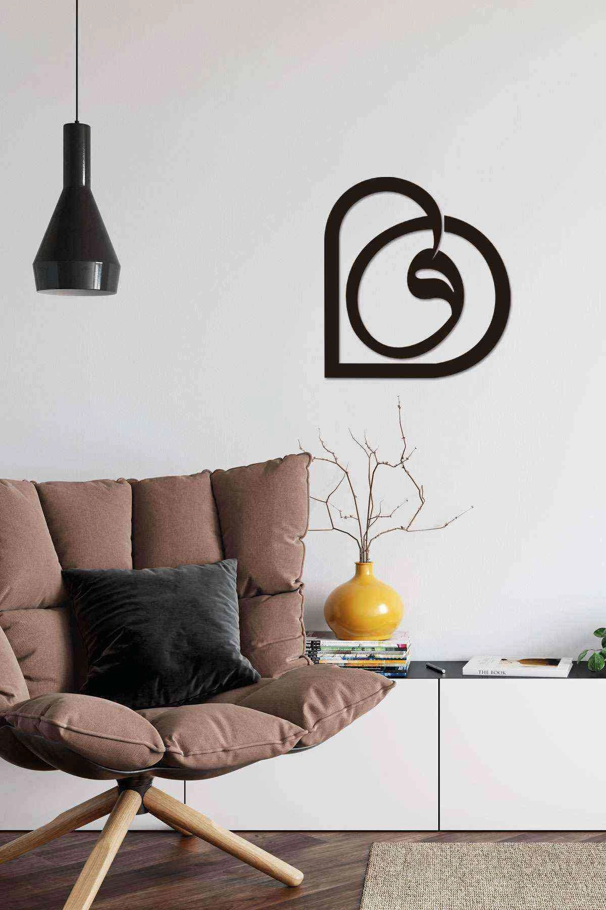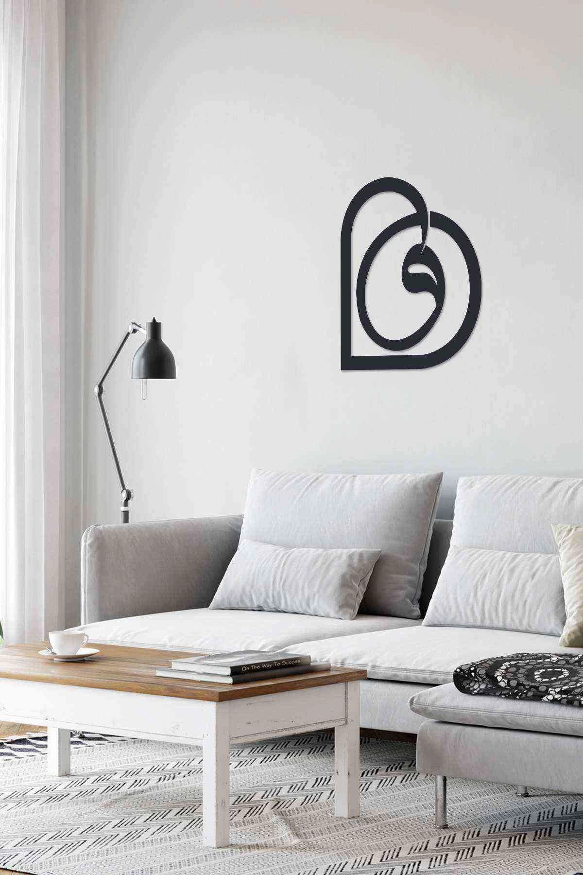 Kalp Vav Duvar Dekoru Tablo Siyah Ahşap Mdf
