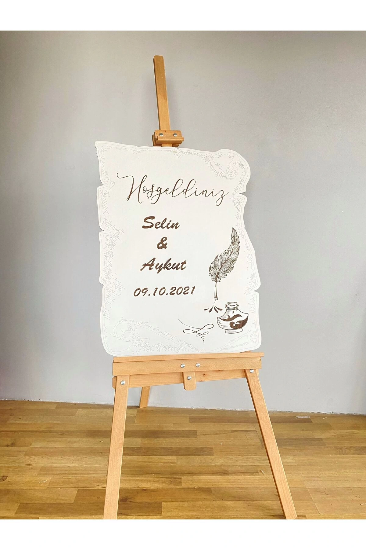 Karşılama Panosu Şövale ve Tasarım Ahşapıyla Birlikte Pano