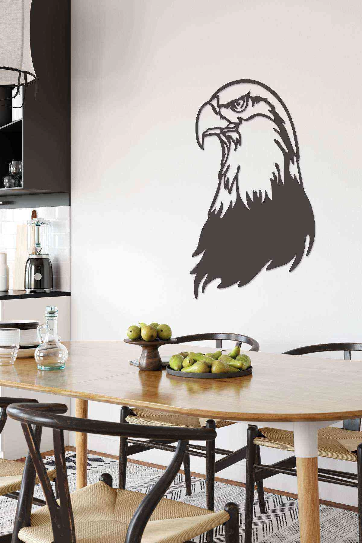 Ahşap malzeme kullanımı, duvar dekorasyonunuza doğal ve sıcak bir dokunuş katar; Kartal figürü ile tasarlanmış bu duvar dekoru, evinizin veya ofisinizin atmosferini zenginleştirir; Siyah renk seçeneği, modern ve şık bir görünüm sunarak mekanınıza zarif bir hava katar; Lazer kesim teknolojisi ile üretilmiş detaylar, dekoratif tablonun estetik kalitesini artırır; MDF (MDF) malzemesi sayesinde dayanıklılık ve uzun ömürlü kullanım vaat eder;
