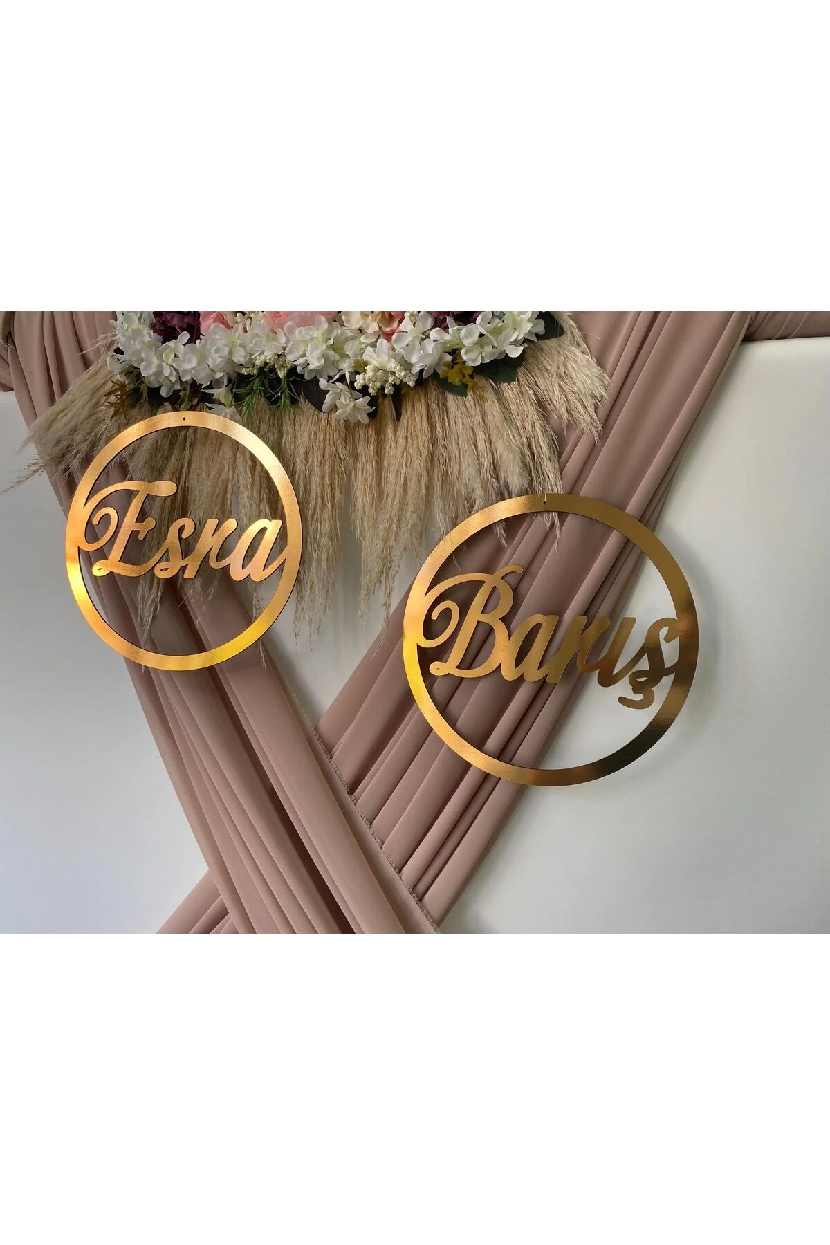 Ürün 3 mm Mdf ahşaptan üretilmektedir.; Ahşap üzeri folyodur.; Paket içeriği 2 adet isimdir.; 1 adet çember 30x30 cm dir.; ; İsimleri belirtmek için lütfen siparişlerim kısmından satıcıya soru sor bölümünden bize isimleri belirtiniz.; Veya sipariş numaranız ile beraber yazılacak isimleri yazarsanız siparişinizi hazırlayıp kargolamasını yapabiliriz.; ; ;