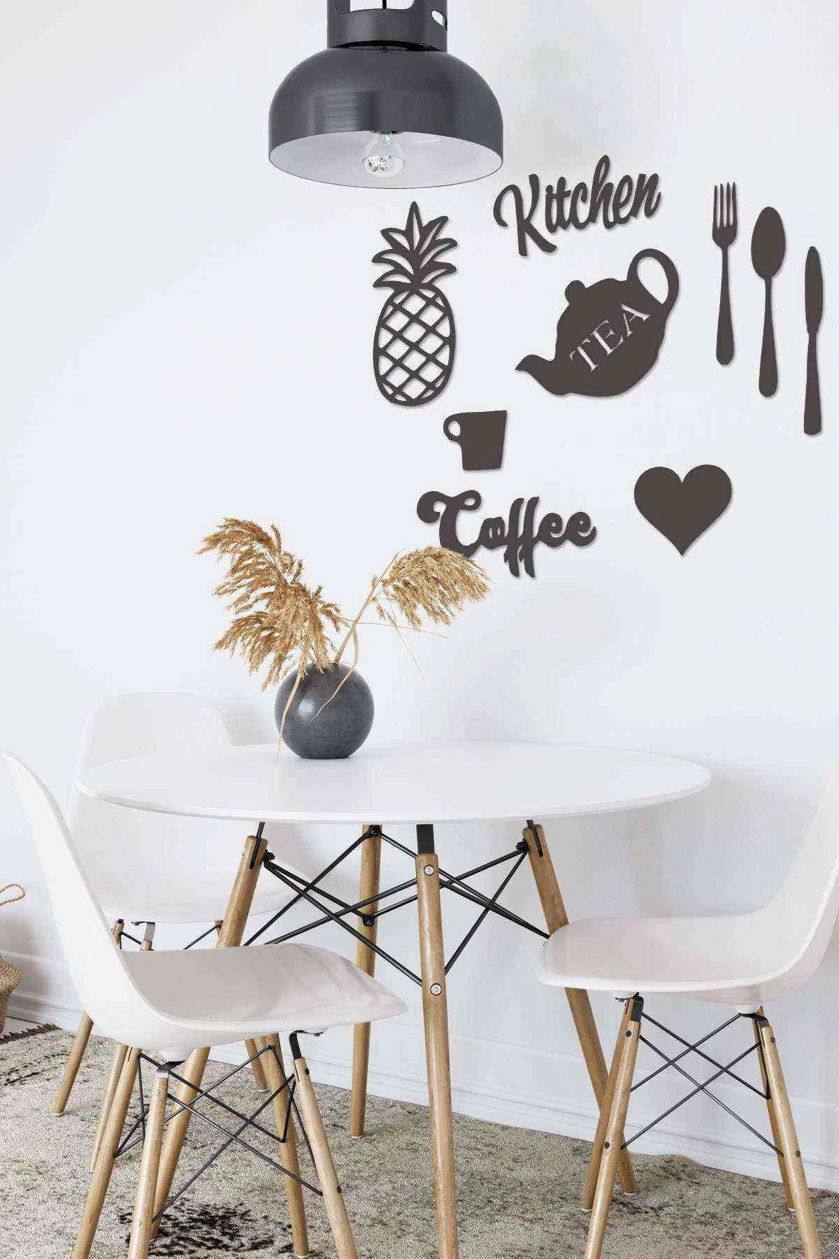 Kitchen Mutfak Süsü Duvar Dekoru Tablosu Siyah Ahşap Lazer Mdf