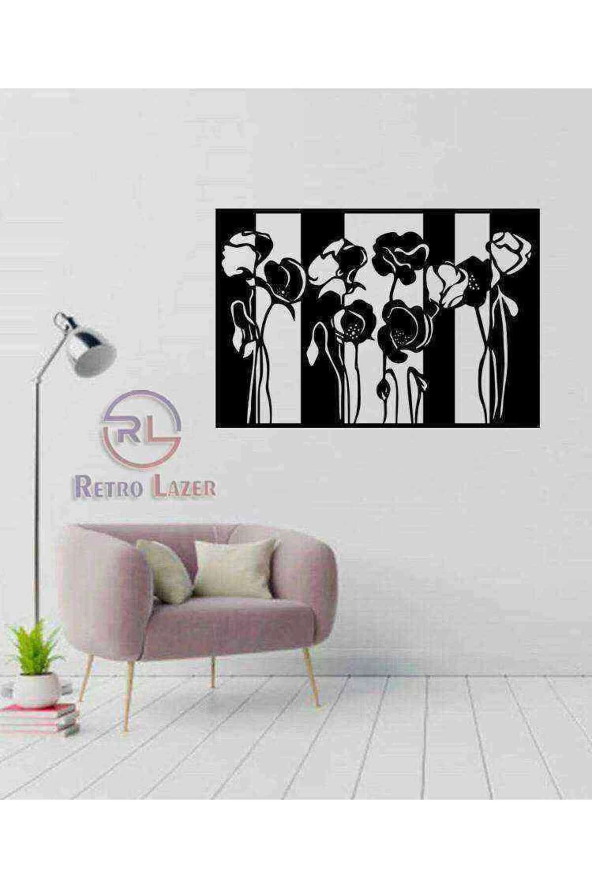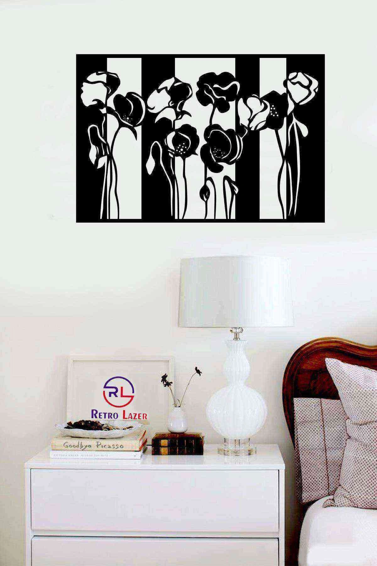 Laleler Duvar Dekoru Tablo Siyah Ahşap Mdf