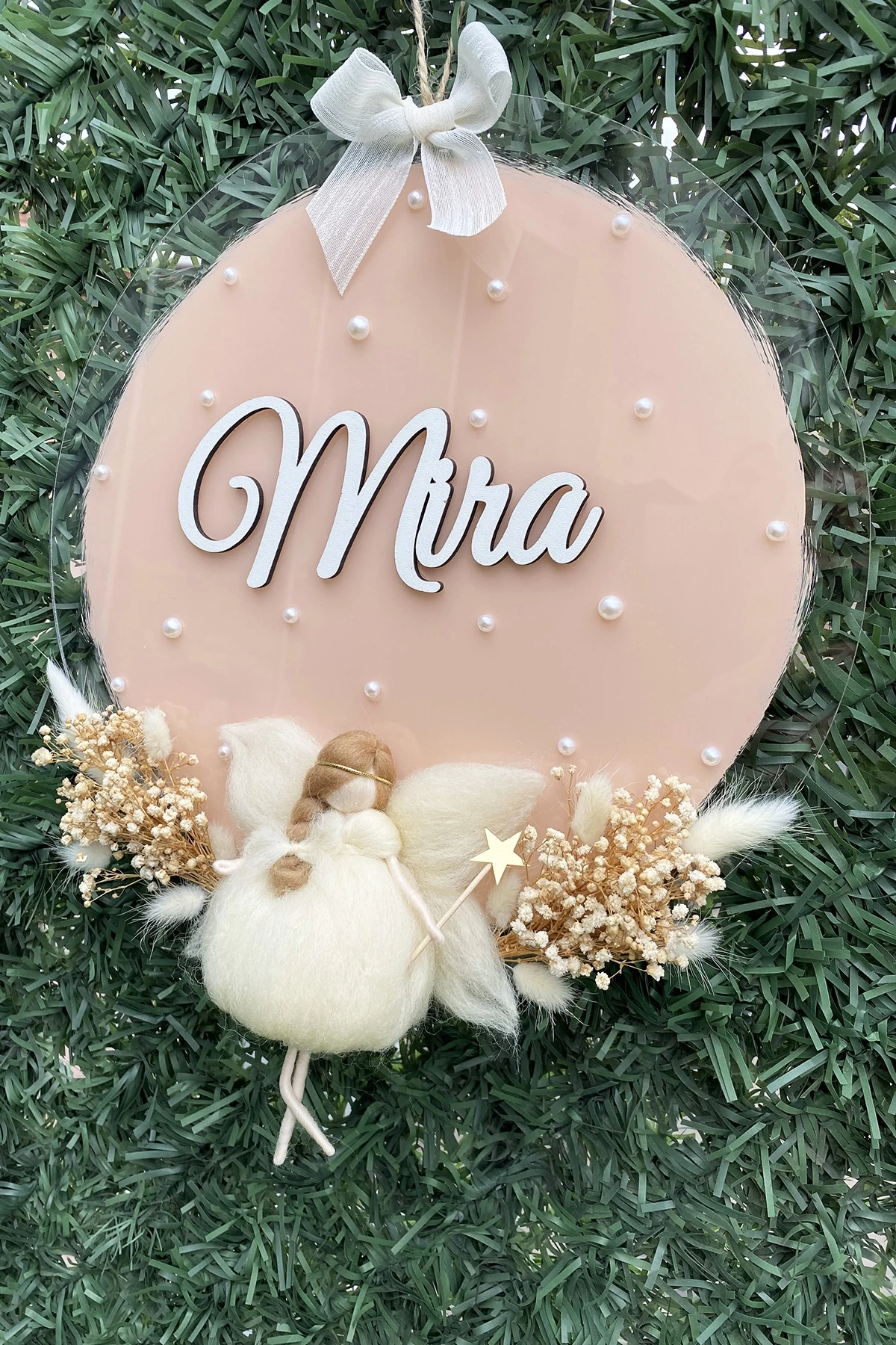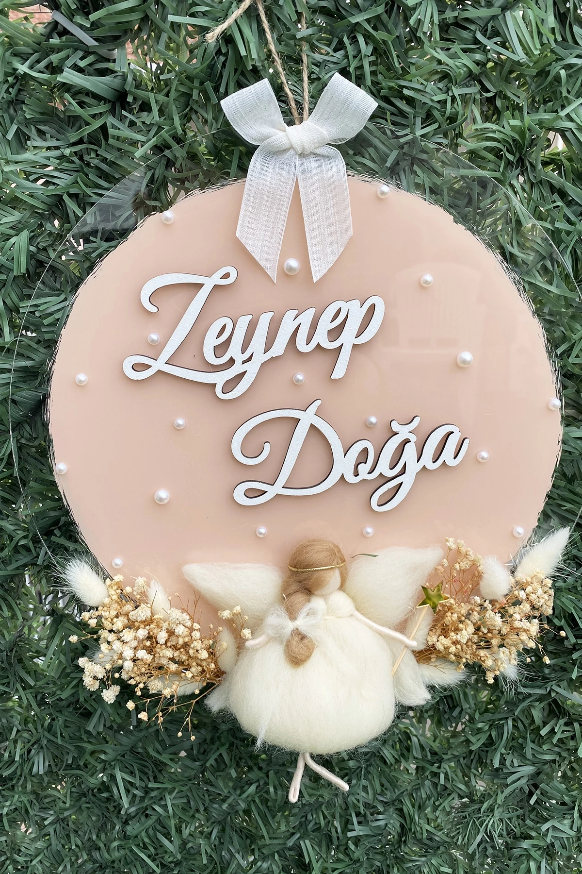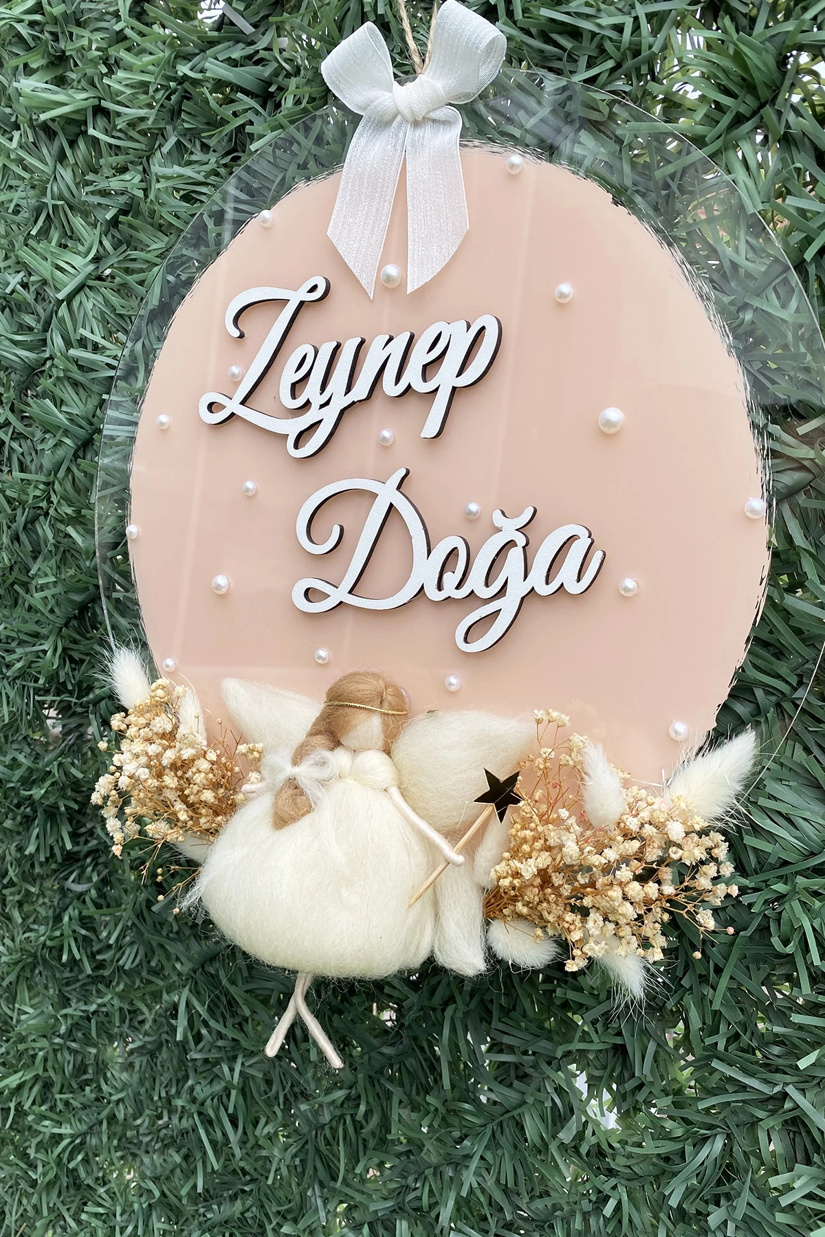 Pleksi Keçe Peri Bebek Kapı Süsü İsimlik Makrome 30x30 cm