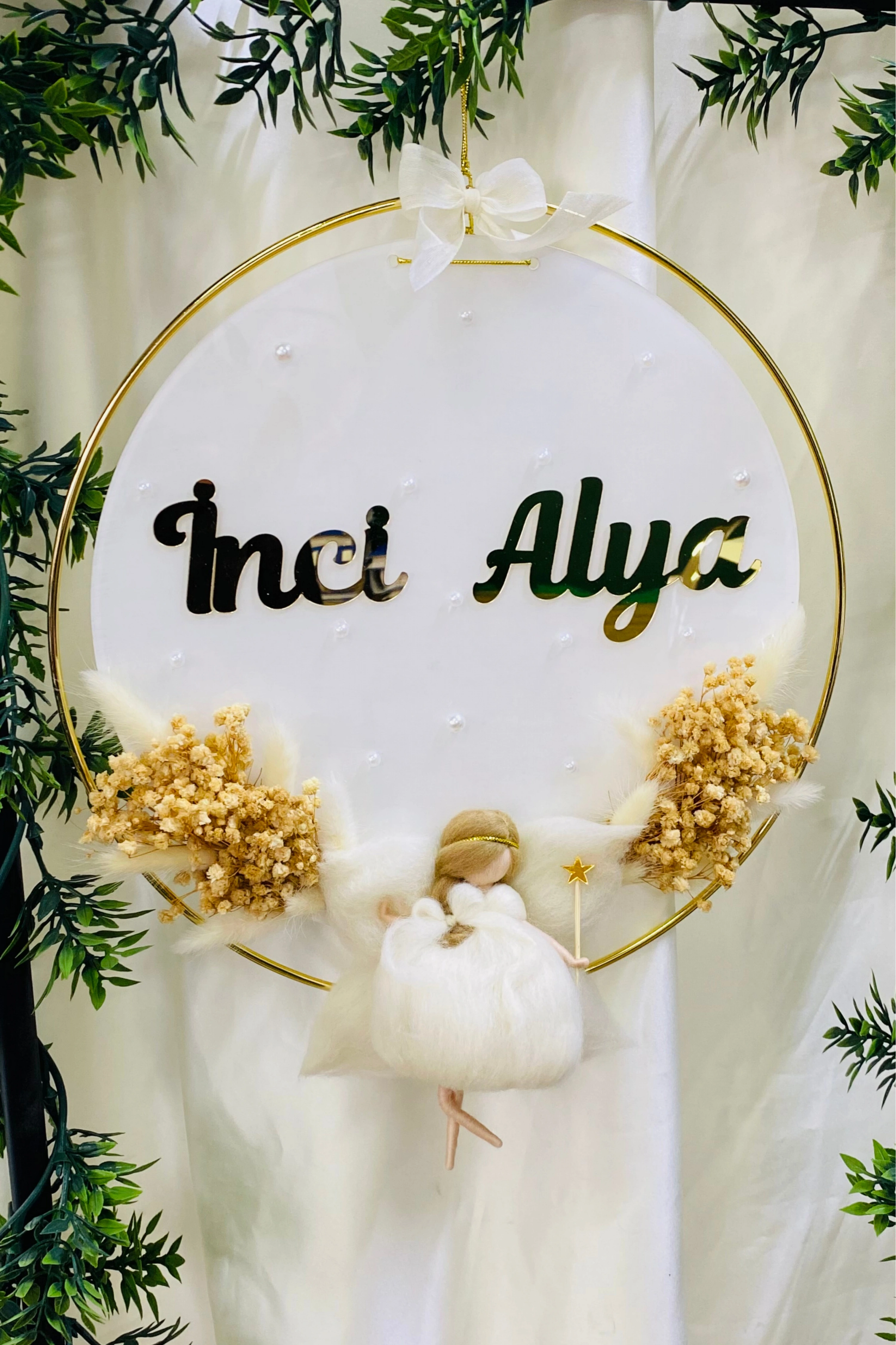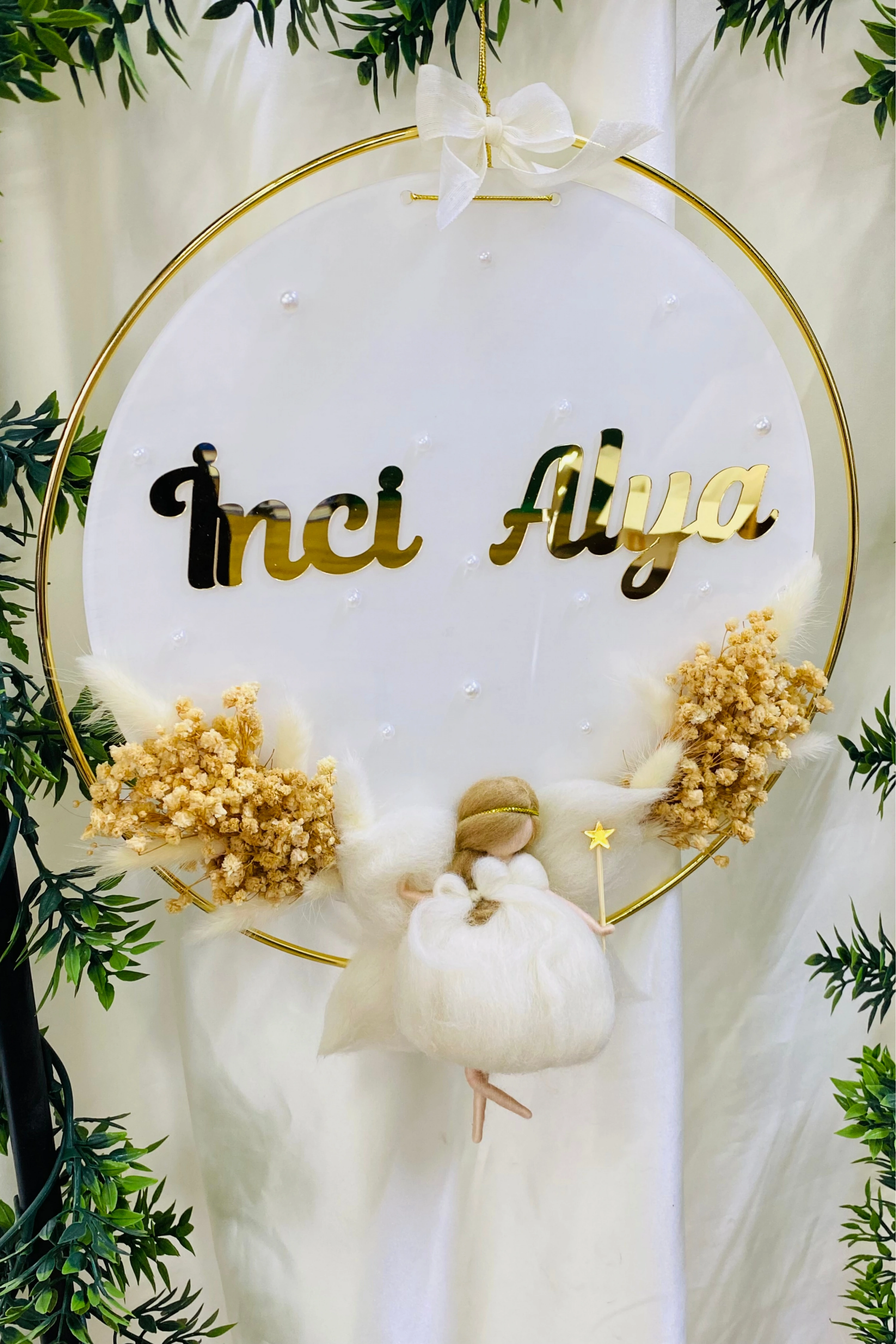 Pleksi Keçe Peri Bebek Kapı Süsü İsimlik Çemberli Makrome 30x30 cm
