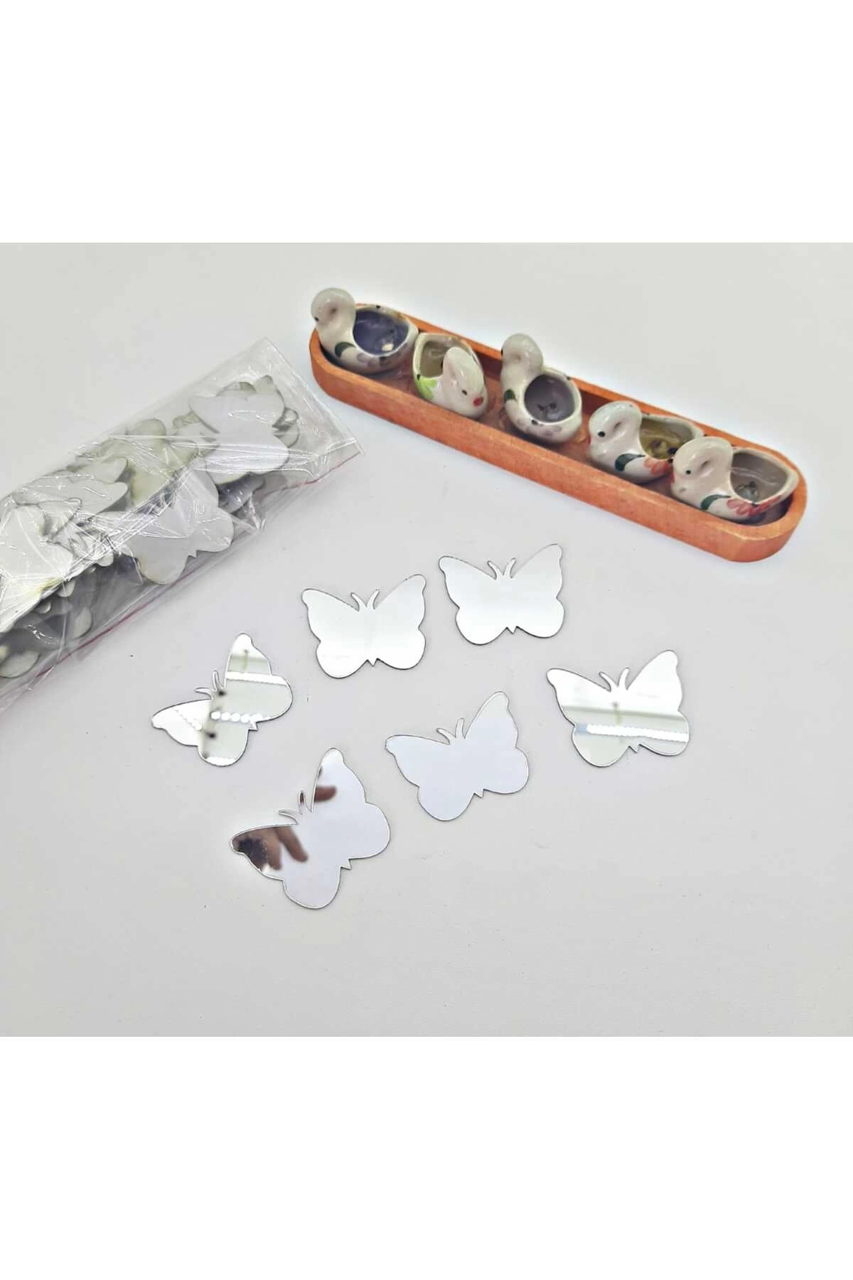 Pleksi Kelebek Dekoru Gümüş 3 Cm 100 Adet