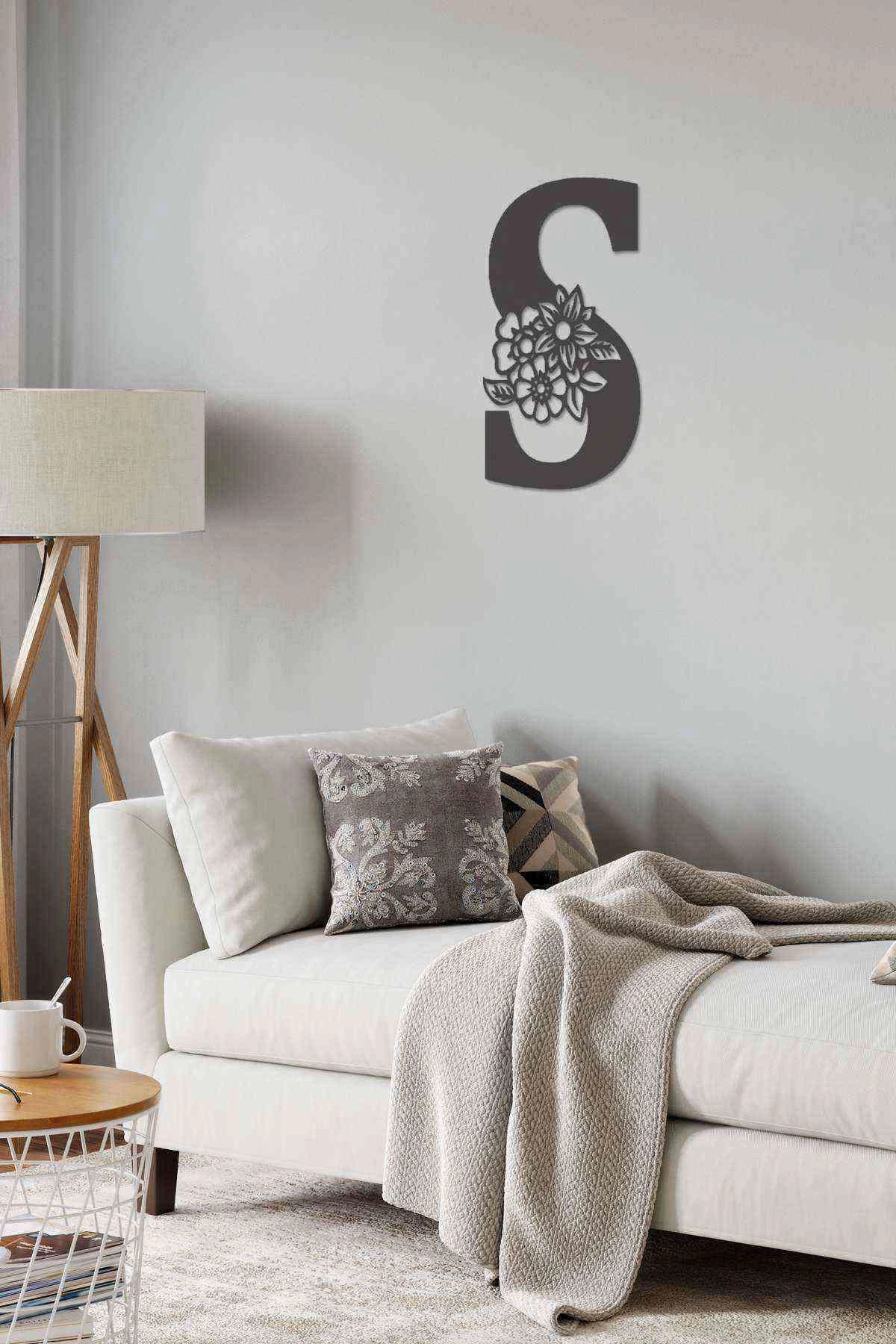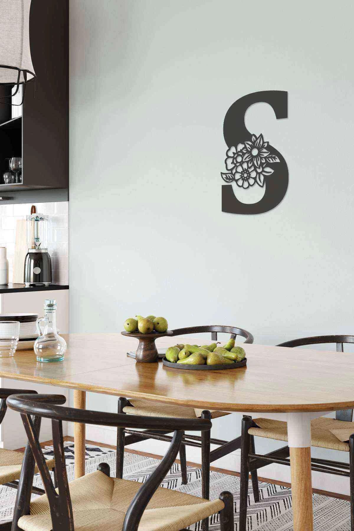 S Harfi Tag Duvar Tablosu Siyah Ahşap Lazer Mdf