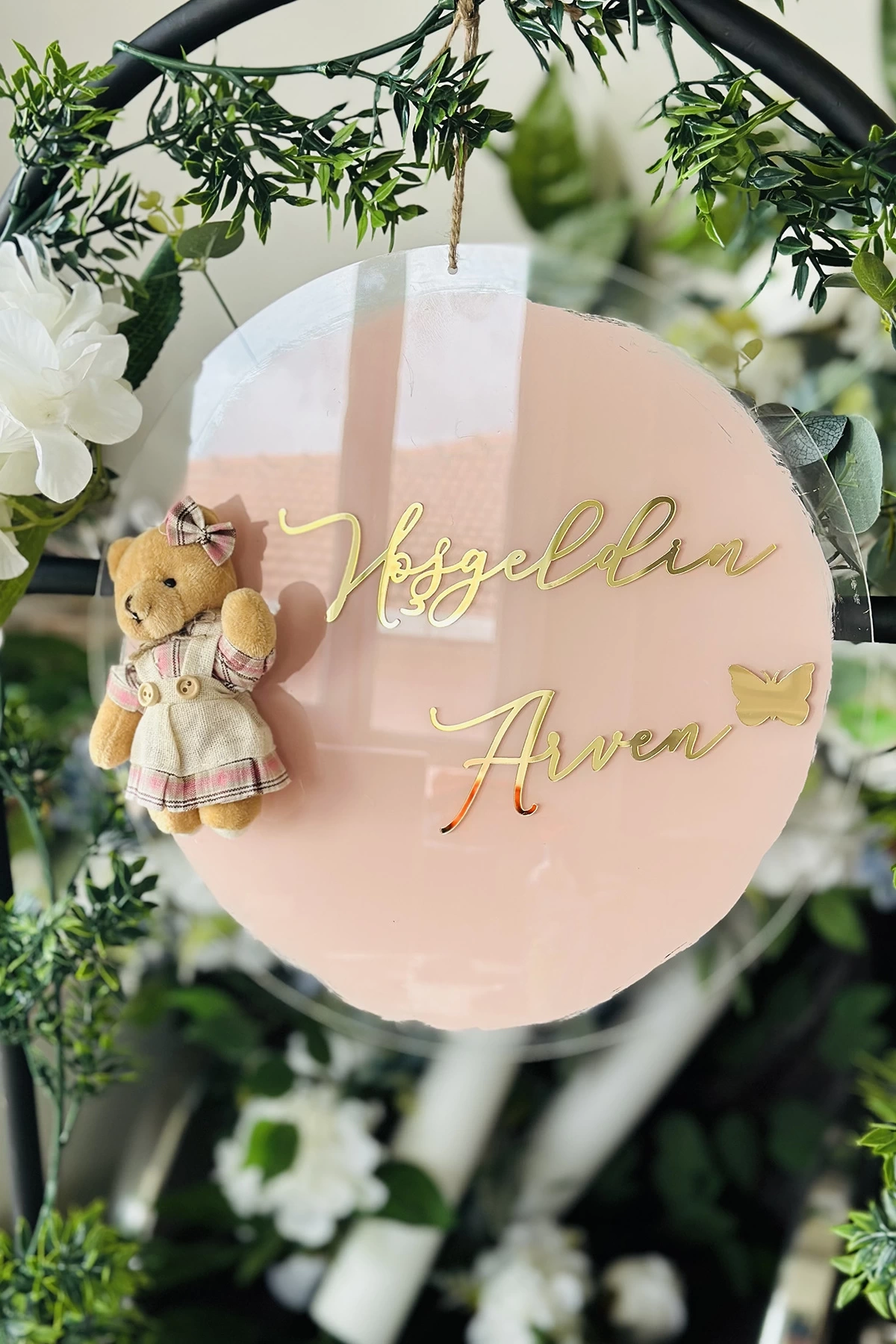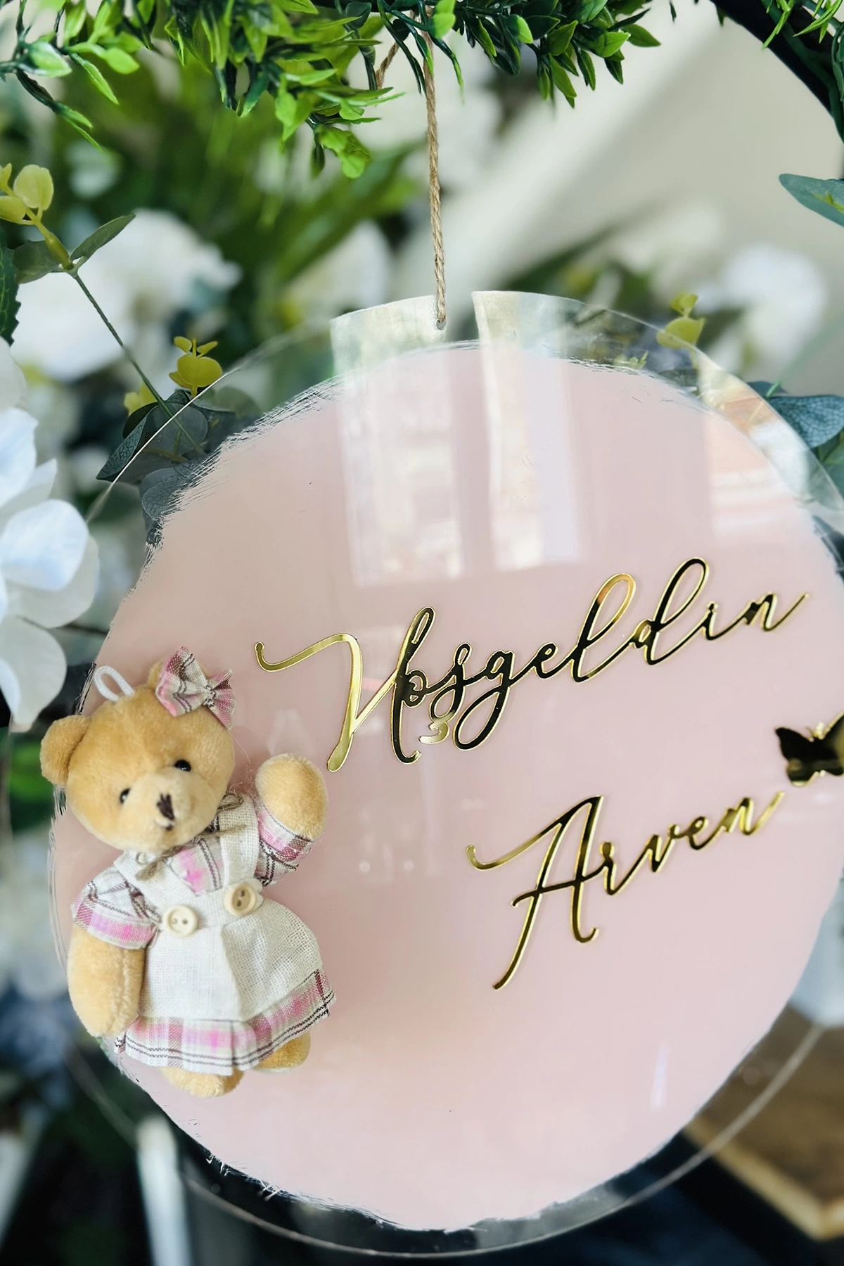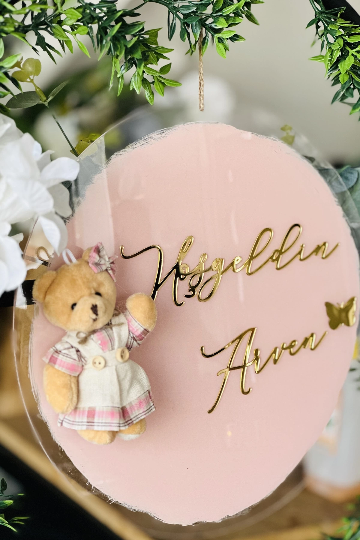 - Şeffaf pleksi arkası pembe boyalıdır.; - Üzerinde ayıcıklı olarak gönderilmektedir.; - Pleksi isim rengi tercihe göre gold veya gümüş olarak yapılabilir.; - Ürün boyutu 30x30 cm'dir.; - ÜRÜN ÜZERİNE YAZILMASINI İSTEDİĞİNİZ İSİM - YAZIYI VE RENGİ ÜRÜNÜ SATIN ALDIKTAN SONRA SİPARİŞ NUMARANIZ İLE BİRLİKTE SATICIYA SOR BÖLÜMÜNDEN İLETİNİZ.