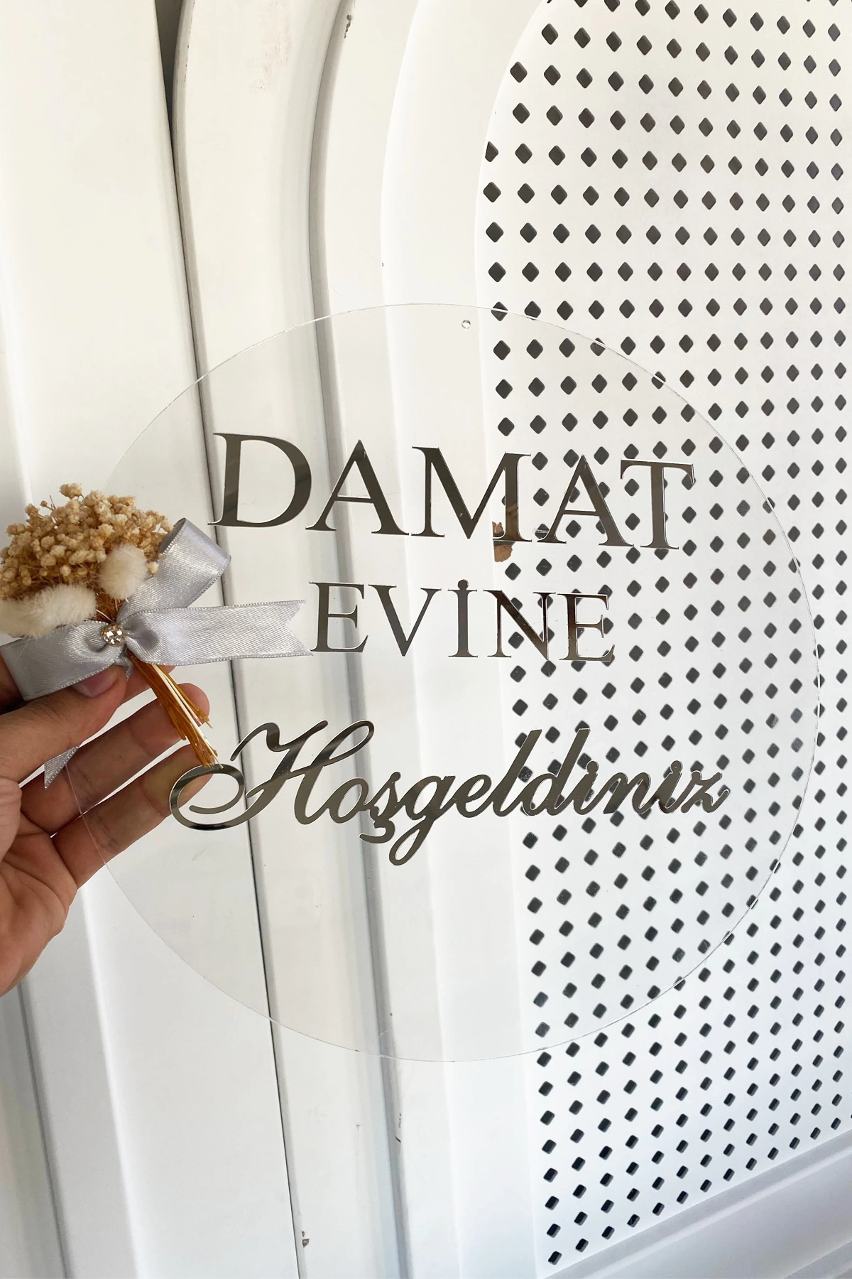 -Damat Evine Hoşgeldiniz pleksi yazılı arkası Şeffaf Pleksi kapı süsü isimlik -Çiçekli olarak gönderilmektedir.; (dilerseniz çiçeksizde yapılabilir) -Pleksi rengi tercihe göre gold veya gümüş olarak yapılabilir.; - ÜRÜN ÜZERİNE YAZILMASINI İSTEDİĞİNİZ İSİM - YAZIYI VE RENGİ ÜRÜNÜ SATIN ALDIKTAN SONRA SİPARİŞ NUMARANIZ İLE BİRLİKTE SATICIYA SOR BÖLÜMÜNDEN İLETİNİZ.; -Ürün boyutu 25x25 cm'dir.;