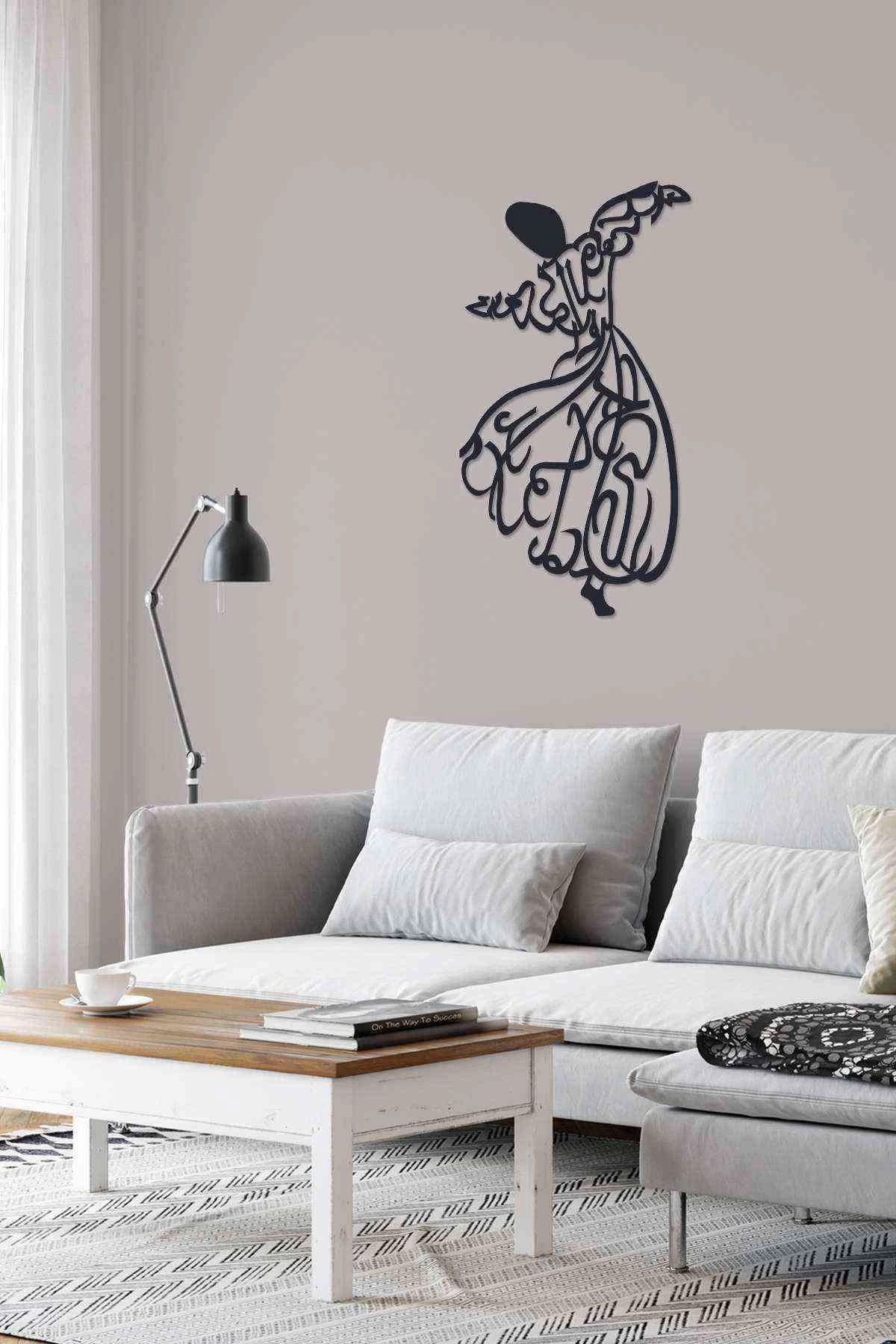 Semazen Duvar Dekoru Tablo Siyah Ahşap Mdf