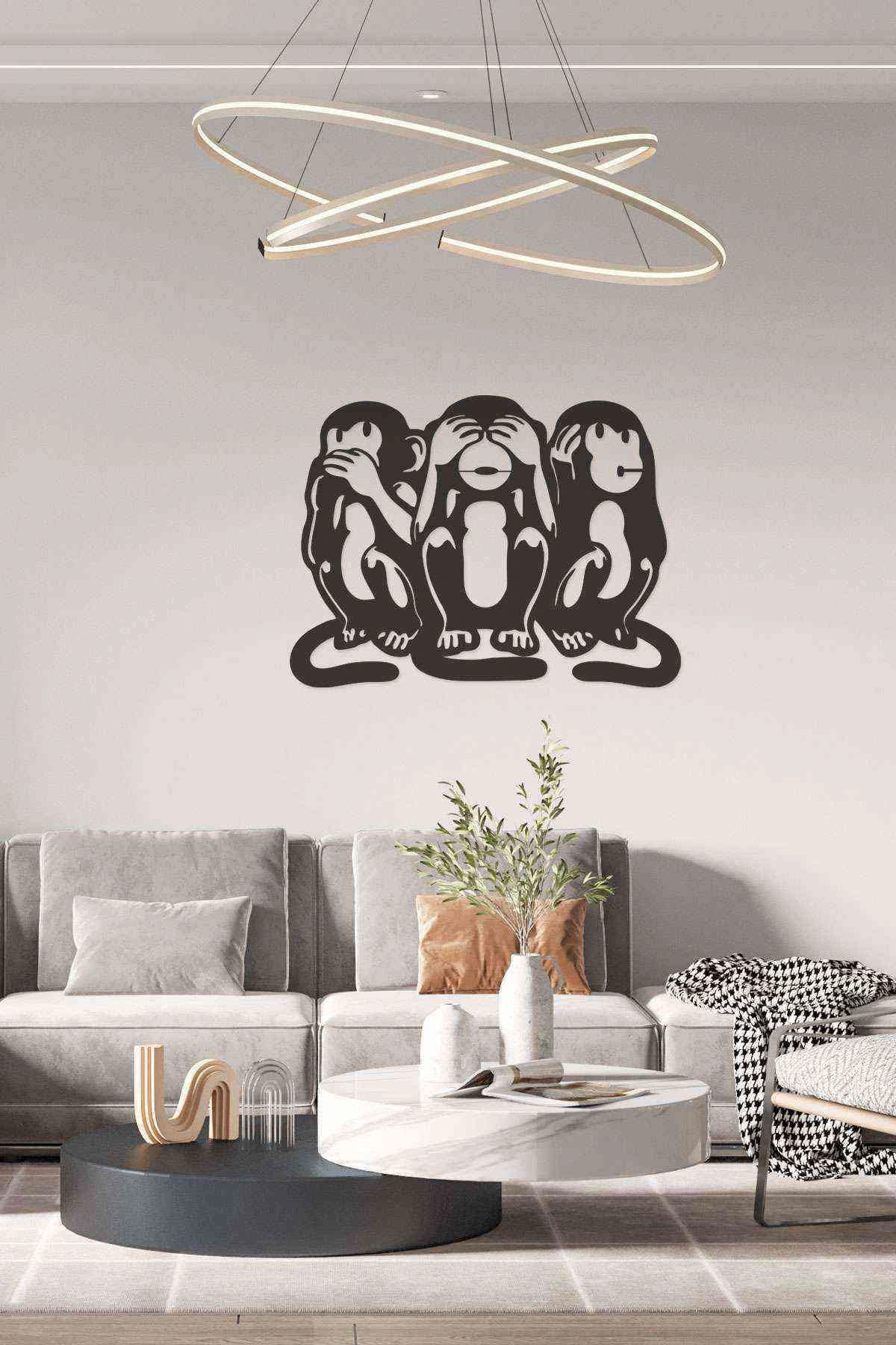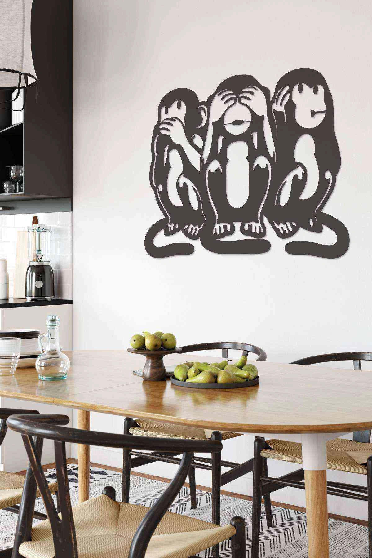 Üç Maymun Görmedim Duymadım Bilmiyorum Dekoratif Duvar Tablosu Siyah Ahşap Lazer Mdf