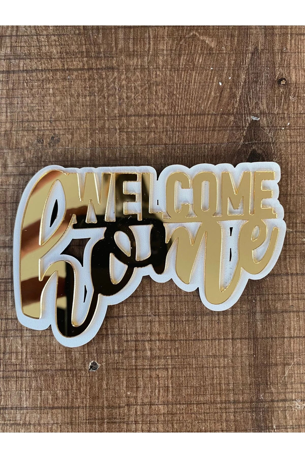 welcome home Beyaz Zemin Üzeri Gold Pleksi Duvar Yazısı Mutfak Duvar Dekoru