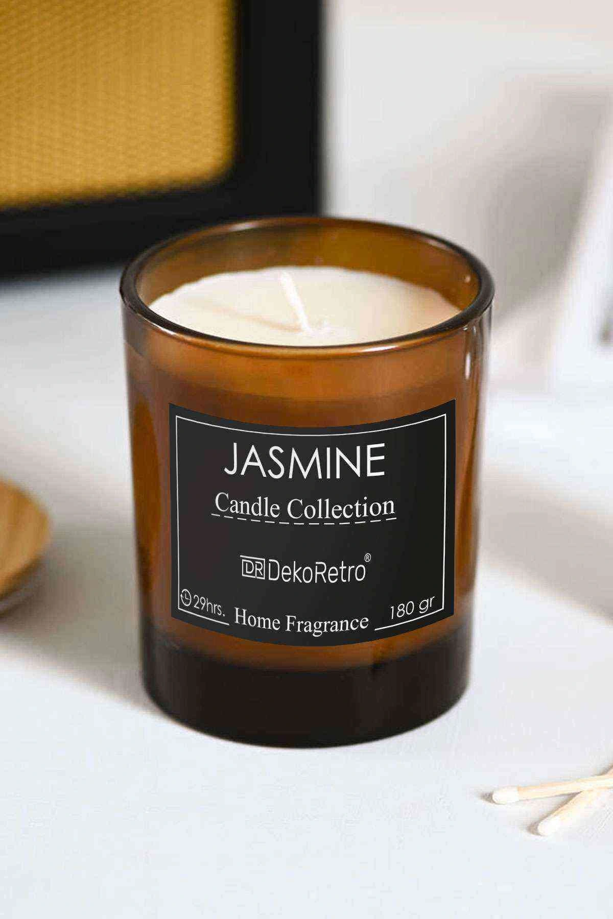 Yasemin Kokulu Amber Bardak Mum Etiketli Jasmine Scented