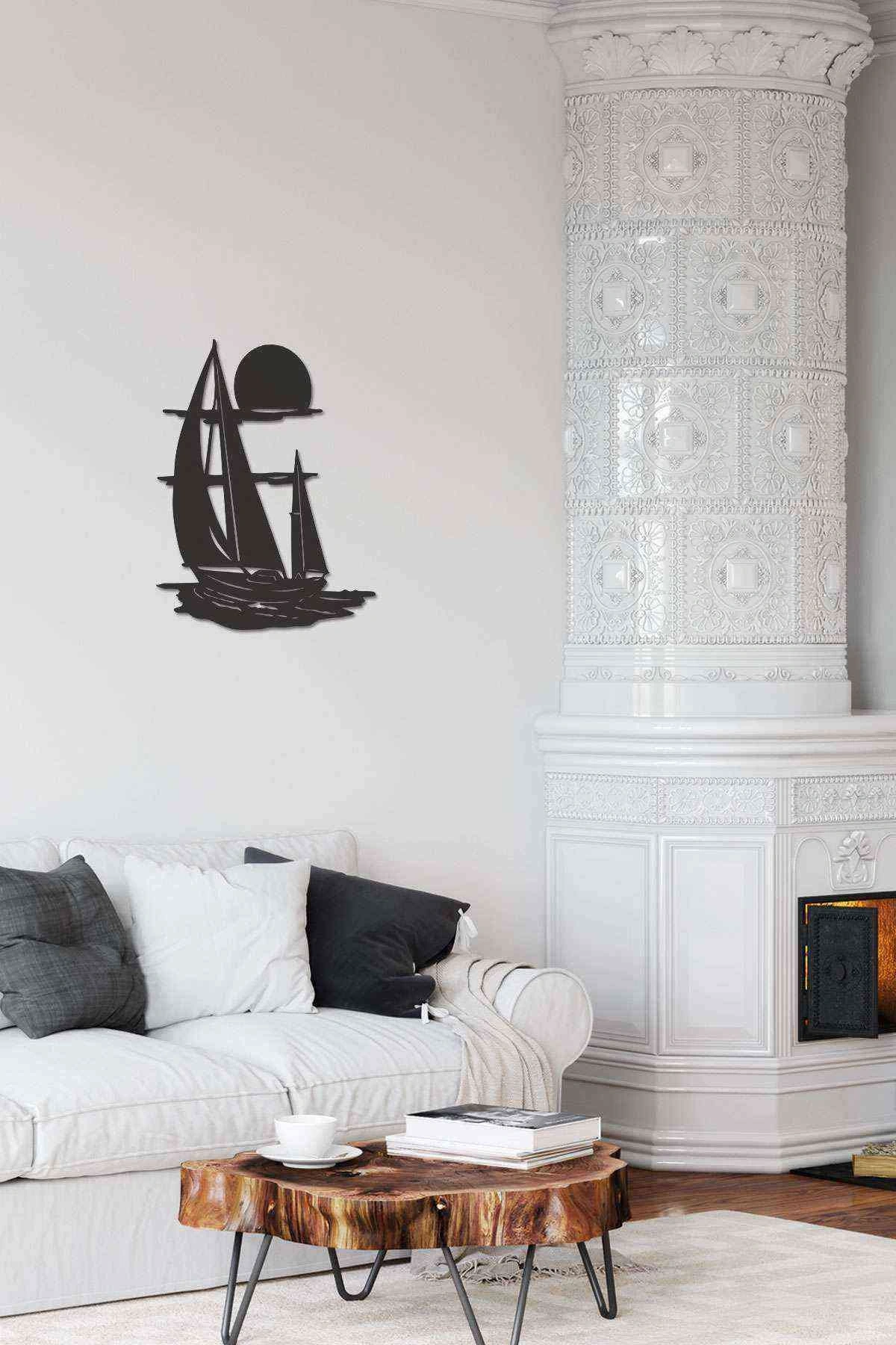 Yelkenli Gemi Duvar Dekoru Siyah Ahşap Lazer Tablo Mdf
