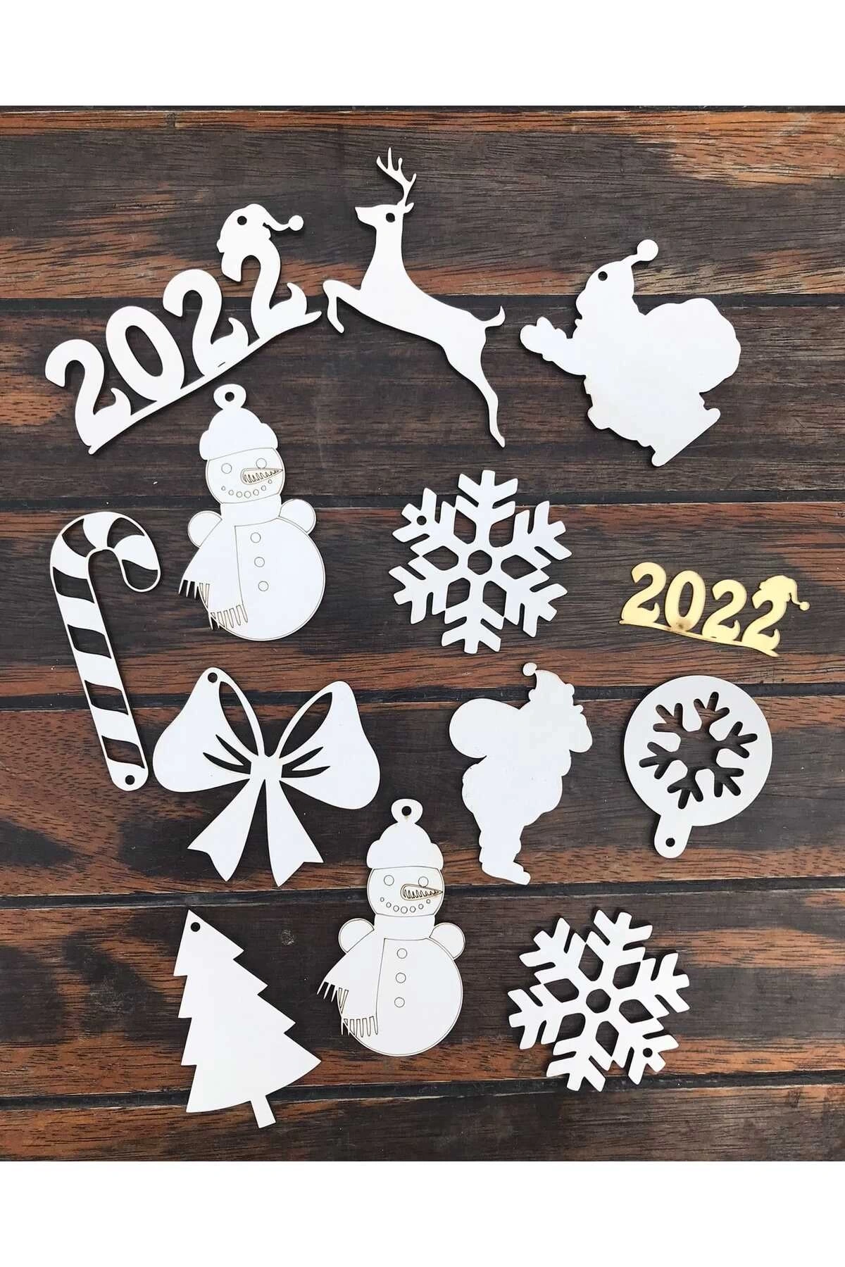 Yılbaşı Ağacı Süsü Hediyelik Pleksi Ahşap 13 Parça Set